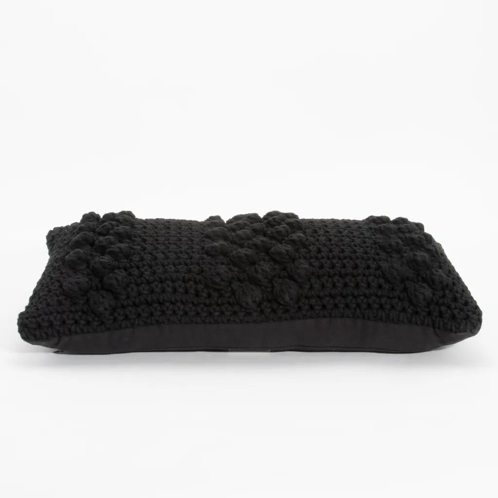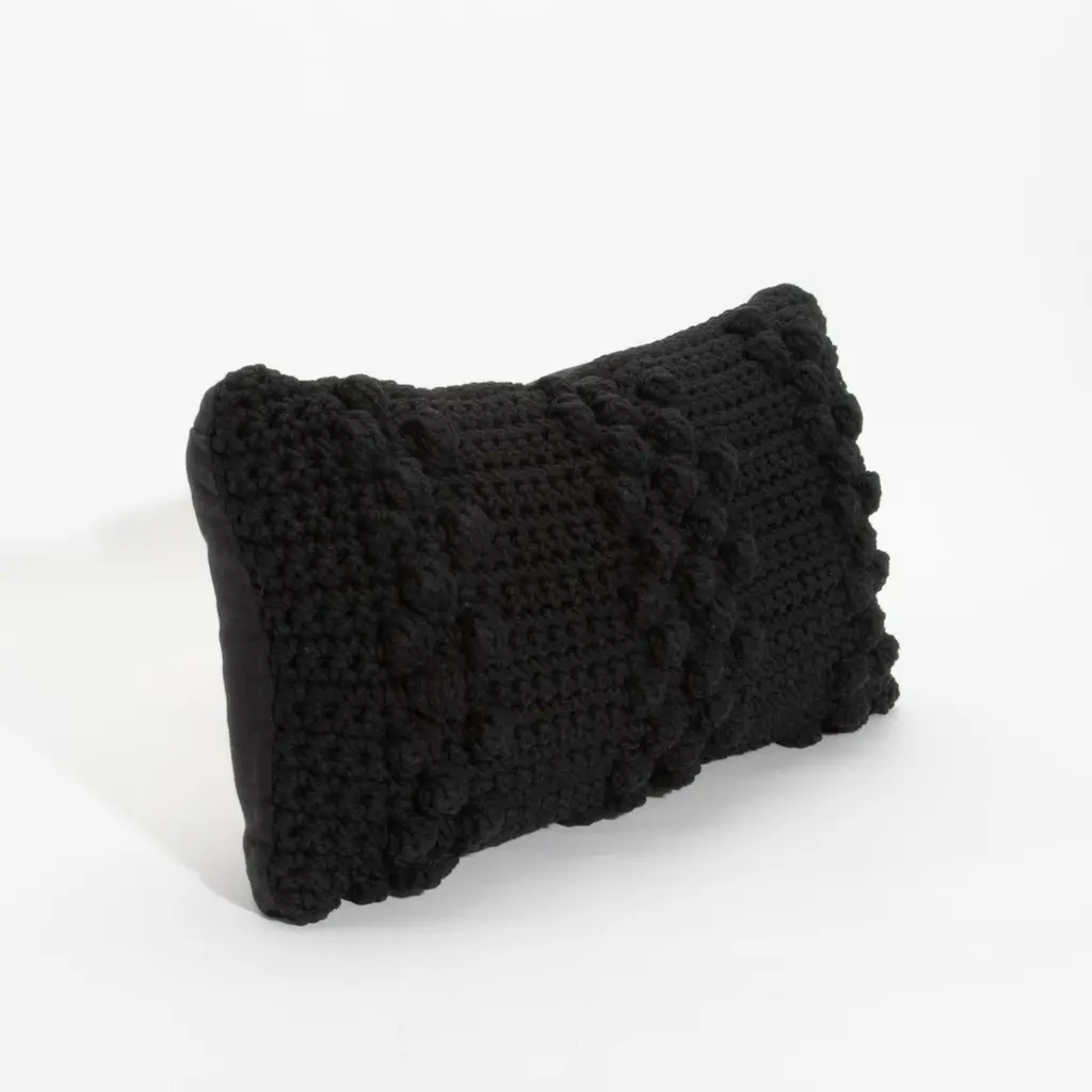 The Modern Black Macrame Decorative Pillow is a sophisticated blend of craftsmanship and modern design, measuring 23” x 13” for a sleek, elongated look that enhances any luxury interior. Its intricately handwoven macrame front in a bold black hue features raised knot detailing, creating a dynamic texture that adds depth and visual interest. Perfect as a standalone accent or layered with other pieces, its soft yet durable linen backing ensures both comfort and longevity. Designed with practicality in mind, the pillow features a removable cover with a discreet zipper closure for effortless maintenance. Complete with a plush insert, it offers exceptional fullness and support, making it a refined addition to sofas, beds, or armchairs. This pillow combines timeless elegance with modern sophistication, effortlessly elevating any room it graces.