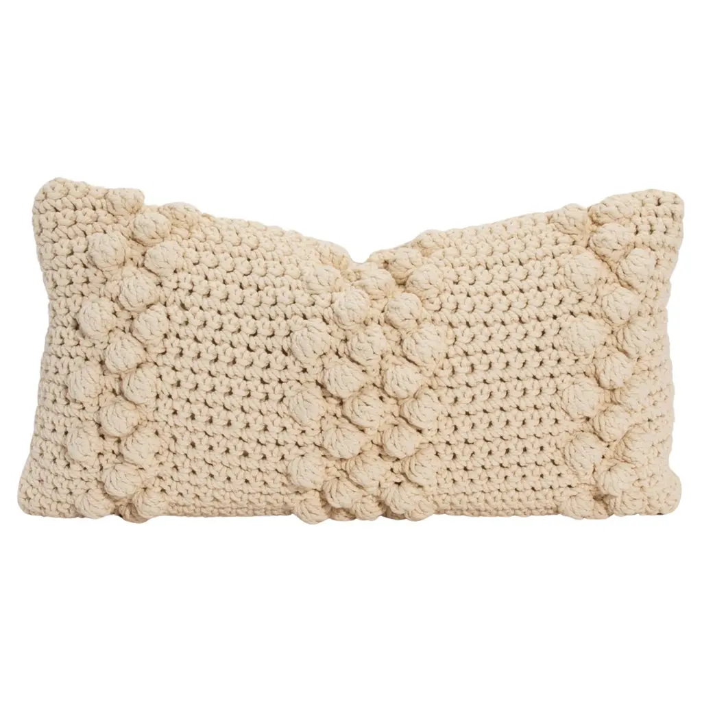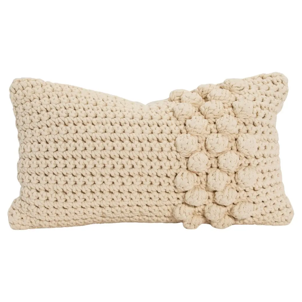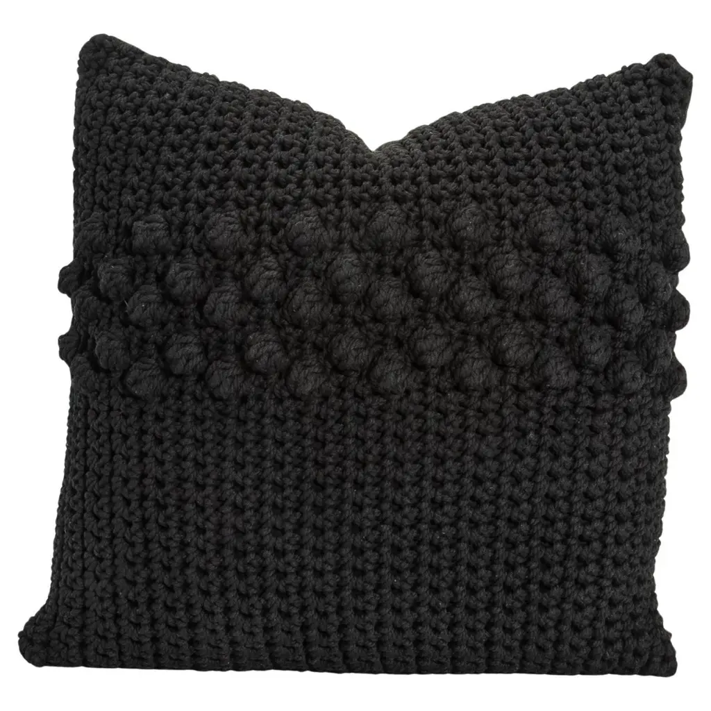 The Modern Black Macrame Decorative Pillow is a sophisticated fusion of artisanal craftsmanship and contemporary design, perfect for elevating any luxury space. Measuring 19 x 12 inches, this pillow features an intricately handwoven macrame front in a bold black hue, showcasing raised knot detailing that adds a striking interplay of texture and depth. Each knot is meticulously crafted, creating a tactile masterpiece that draws attention while offering a unique artistic element to your décor. The reverse side is backed with soft, durable linen, providing a seamless balance between aesthetics and practicality. Its removable cover, complete with a concealed zipper closure, allows for effortless care and maintenance. A plush insert is included, ensuring optimal comfort. This pillow embodies refined style and impeccable quality, making it an ideal accent for modern, elegant interiors.