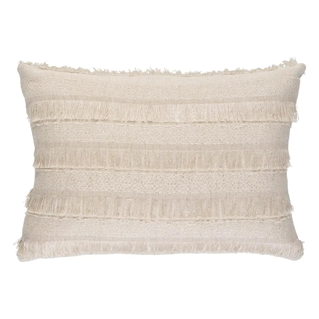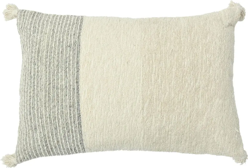 Elevate your home's look with a chic Modern Wool and Cotton Pillow, meticulously handmade with opulent materials, in a 16" x 24" size. This Once-Size Pillow has a beige back color.