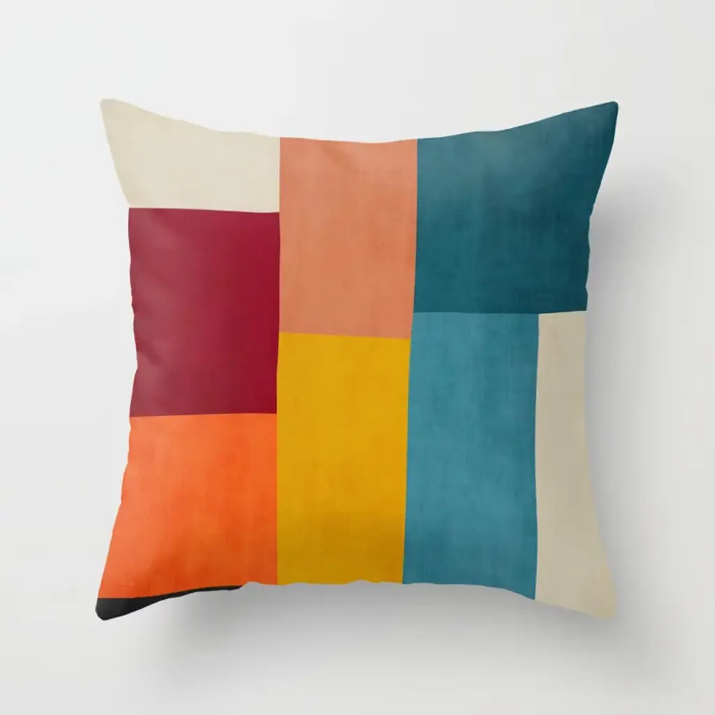 Modern Colorful Patchwork Abstract Art Throw Pillow