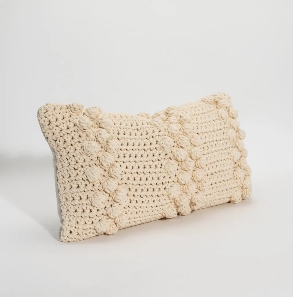 The Modern Cream Macrame Decorative Pillow is a masterful combination of artisanal craftsmanship and contemporary elegance, designed to elevate any space with its understated sophistication. Measuring 23” x 13”, its elongated shape adds a modern twist to traditional pillow styling, making it perfect for layering or as a standout piece. The intricately handwoven macrame front, crafted in a soft cream hue, showcases raised knot detailing that creates a striking interplay of texture and depth, adding both tactile and visual appeal. Its neutral tone ensures versatility, complementing a wide range of interior palettes while maintaining a sense of refined luxury. Backed with soft yet durable linen, the pillow offers comfort and lasting quality, while its removable cover, featuring a discreet zipper closure, allows for effortless maintenance. Complete with a plush insert for superior fullness and support, this pillow seamlessly combines practicality and style, making it an exquisite accent for sofas, beds, or armchairs in modern luxury interiors.