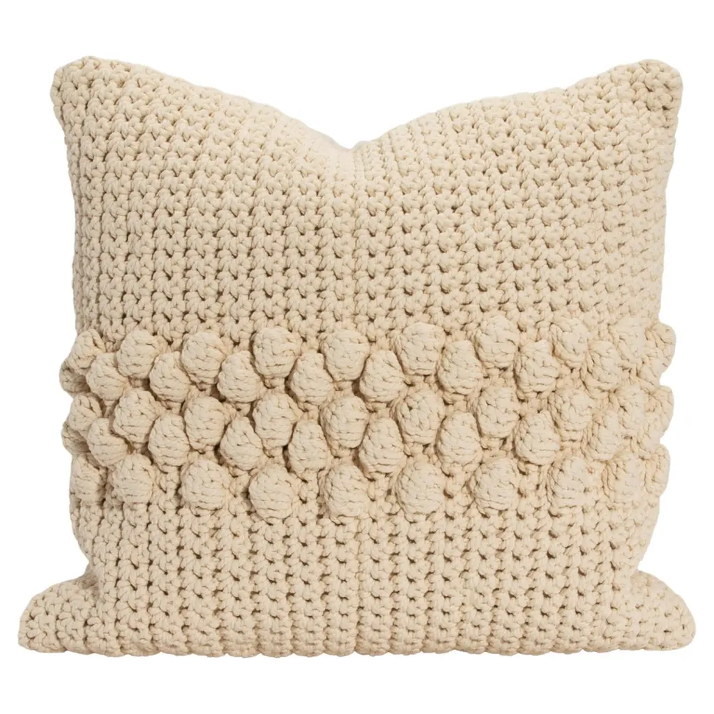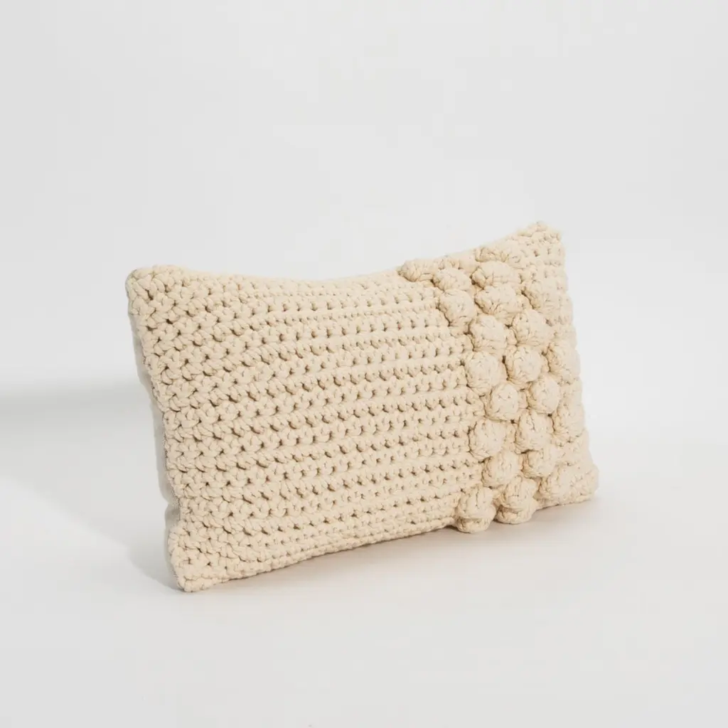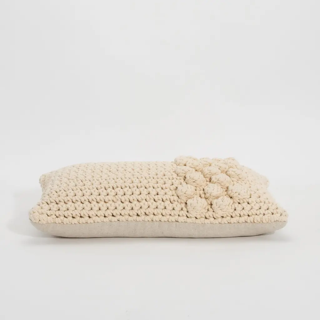 The Modern Cream Macrame Decorative Pillow is a sophisticated fusion of artisanal craftsmanship and contemporary design, perfect for elevating any luxury space. Measuring 19 x 12 inches, this pillow features an intricately handwoven macrame front in a soft cream hue, showcasing raised knot detailing that adds a striking interplay of texture and depth. Each knot is meticulously crafted, creating a tactile masterpiece that draws attention while offering a unique artistic element to your décor. The reverse side is backed with soft, durable linen, providing a seamless balance between aesthetics and practicality. Its removable cover, complete with a concealed zipper closure, allows for effortless care and maintenance. A plush insert is included, ensuring optimal comfort. This pillow embodies refined style and impeccable quality, making it an ideal accent for modern, elegant interiors.