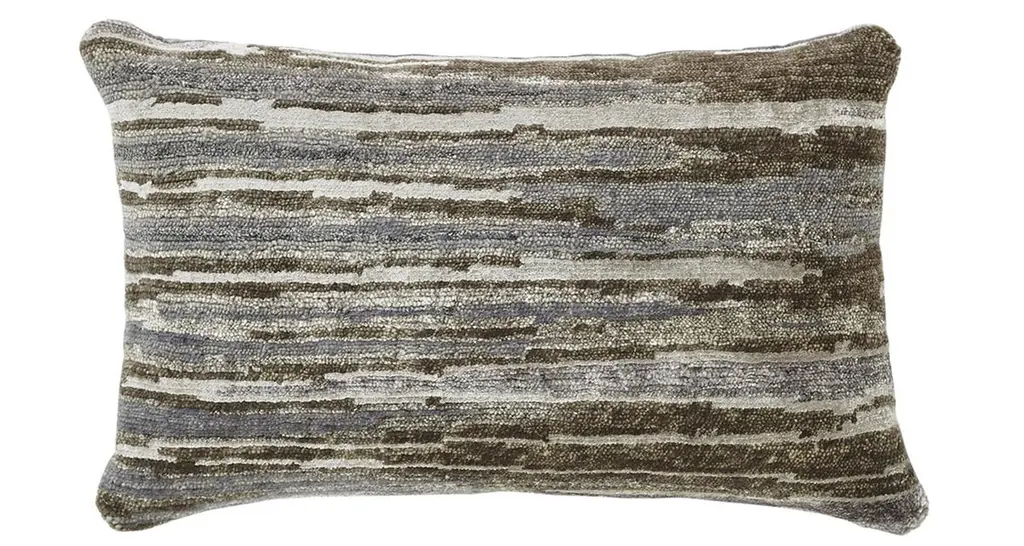 This new accent pillow of East-meets-West design aesthetic showcases a Tibetan design with predominant Earthy Striped color. Hand-made, using either 100% premium wool.This pillow measure: 14" x 22".