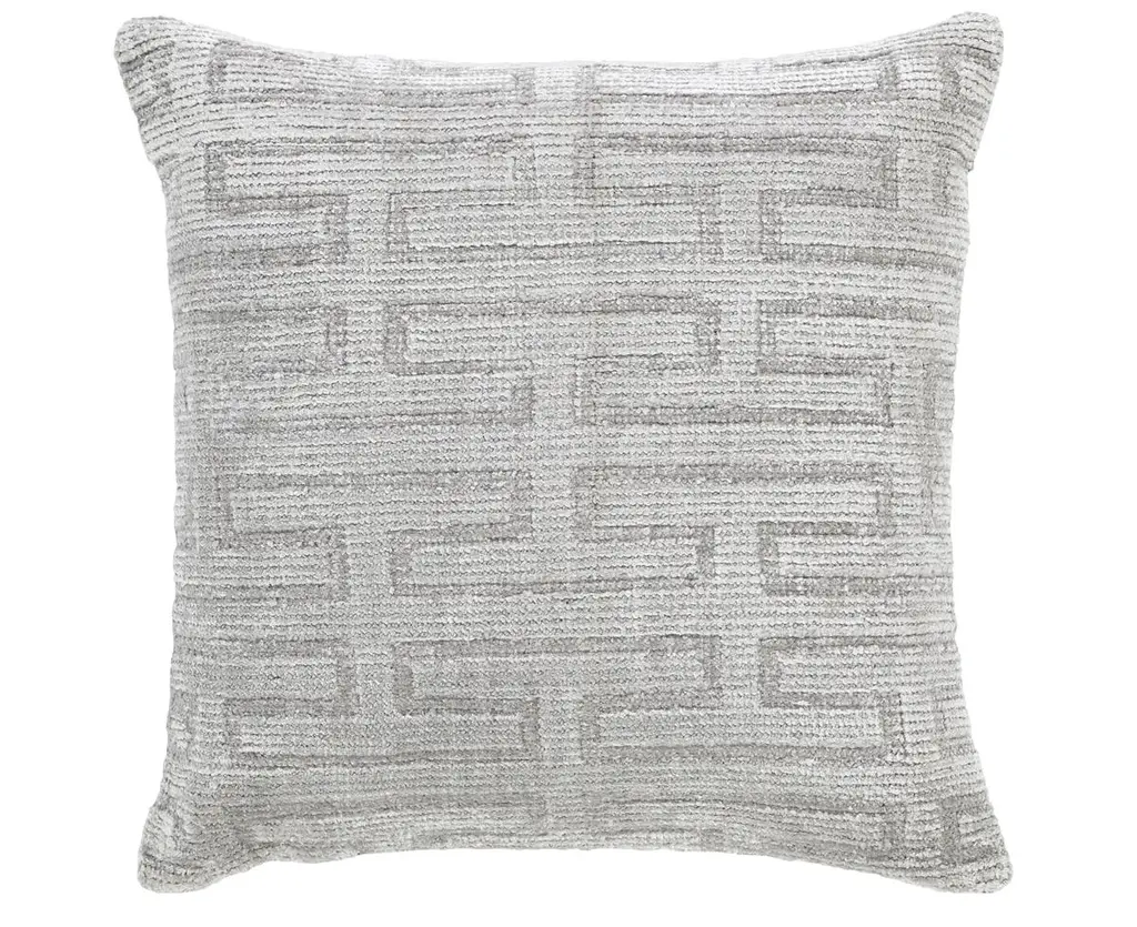 This new accent pillow of East-meets-West design aesthetic showcases a geometrical design with predominant pearl gray color. Hand made, using either 100% premium wool.This pillow measure: 22" x 22".