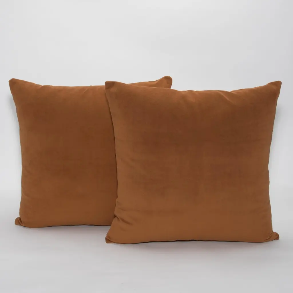 Crafted with impeccable attention to detail, the Modern Saddle Velvet Decorative Pillow by MOGUL is a luxurious addition to any home. These pillows showcase a warm saddle hue that exudes an inviting sense of refinement, effortlessly bridging the gap between classic and contemporary interiors. The rich color, reminiscent of natural earth tones, adds depth and warmth to your décor while maintaining a sophisticated aesthetic. Made from sumptuous velvet, the fabric offers an irresistibly soft texture, creating a tactile indulgence that enhances comfort. The expertly concealed zipper closure not only provides a seamless appearance but also ensures effortless removal and care of the covers, marrying practicality with elegance. Complete with high-quality inserts, these pillows deliver both style and plush support. Perfect for sofas, armchairs, or beds, they elevate any living space with their timeless charm and luxurious craftsmanship.