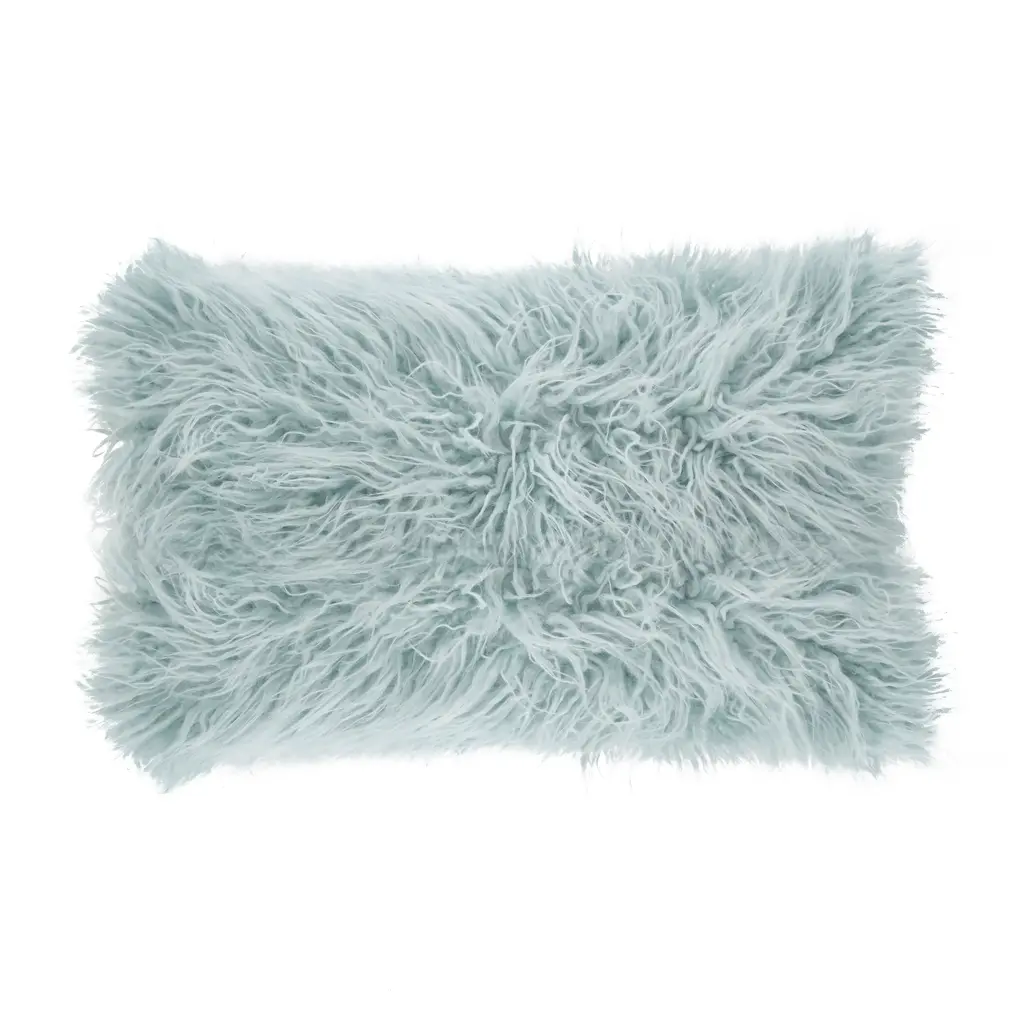 Mongolian Faux Fur Poly Filled Throw Pillow - Ice Blue / 22"x22"
