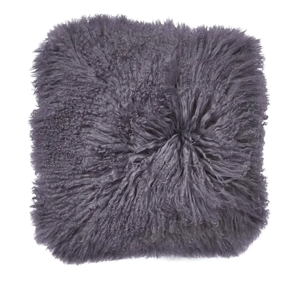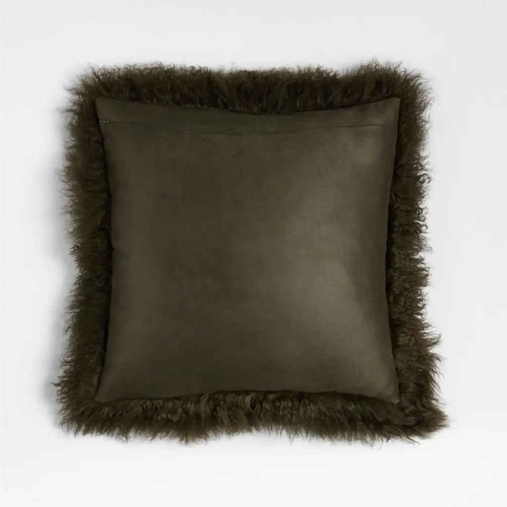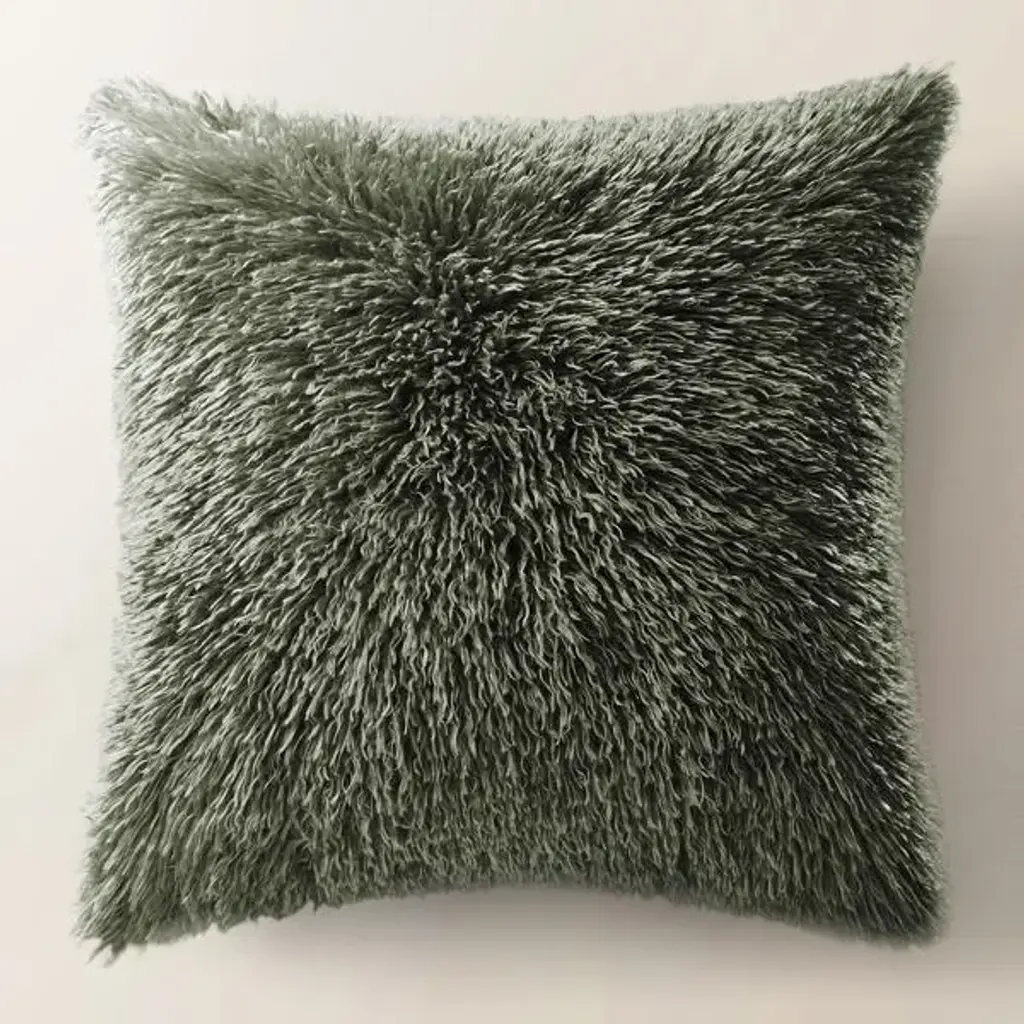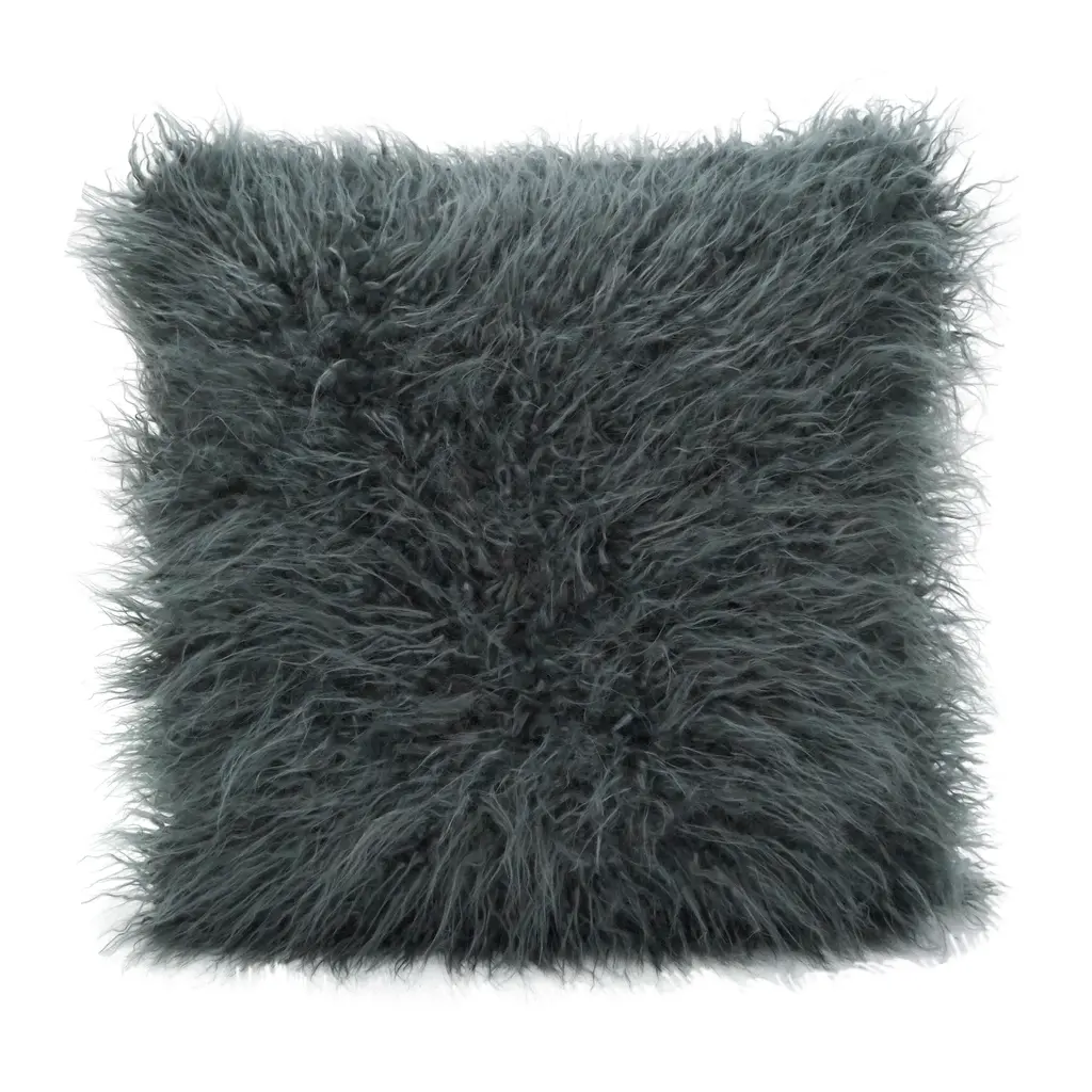Luxuriate in the exceptional softness of Mongolian sheepskin. This silky, long-haired pillow brings natural beauty and indulgence to a sofa, chair or bed in deep grey-green, reversing to a matching faux suede back. Our exclusive square pillow includes your choice of a plush feather-down or lofty down-alternative insert.