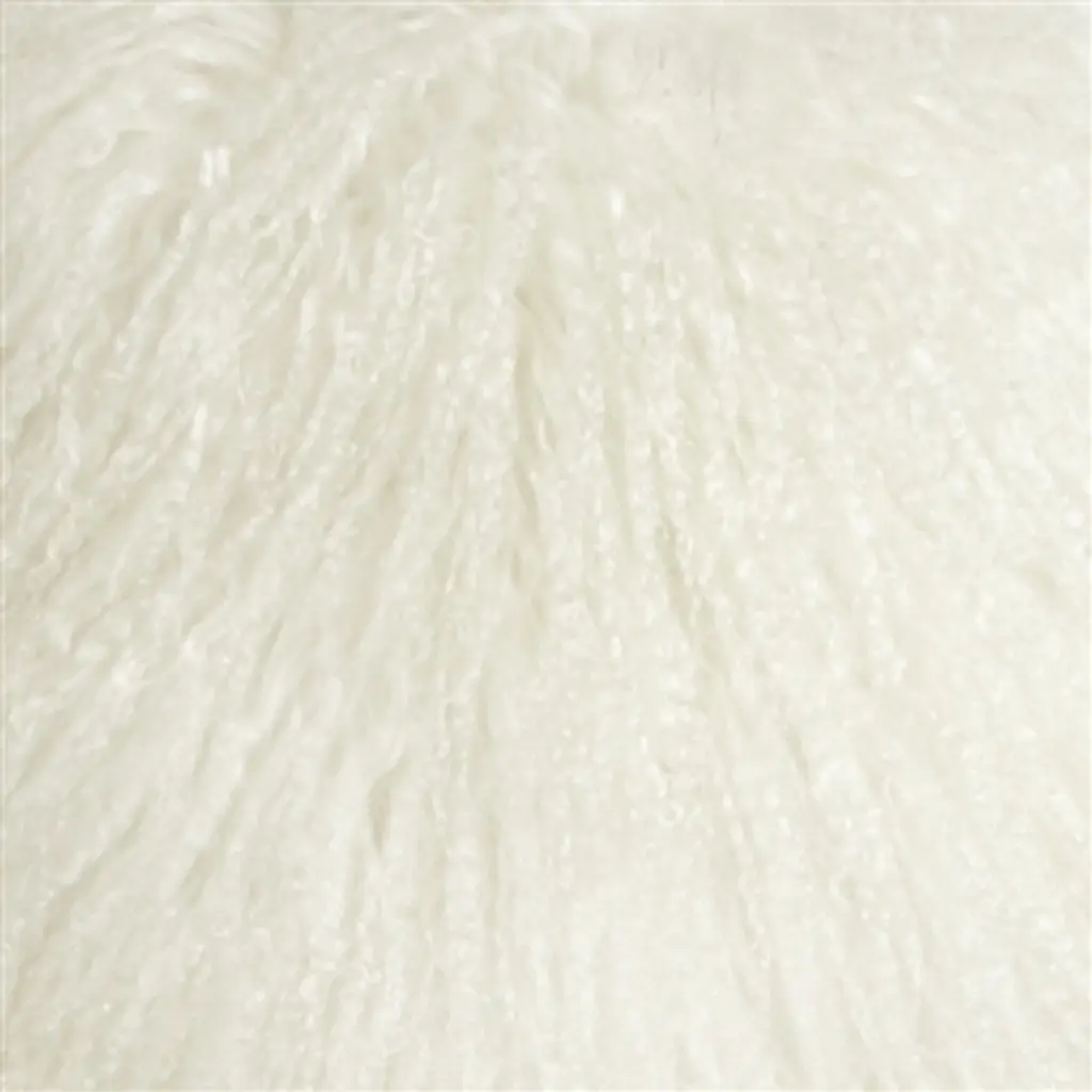 This white Mongolian pillow is made from Mongolian sheep's wool and is backed by an ultra soft faux suede in a matching color. The pure white of this pillow will coordinate beautifully with white leather sofas and crisp white linens. The delightfully soft texture of this exclusive wool creates a powerful visual statement. Lifted by the slightest breeze the incredibly soft hairs dance lightly, entrancing any passerby. Its touchable and inviting look will add a dynamic yet soft and approachable element to your space. This natural wool pillow's generous proportion and amazing texture make it a centerpiece to any room. Size: 18"x18" Square Front: 100% Mongolian Sheepskin in White Back: Soft faux suede in matching color Color matched concealed zipper closure Dry Clean Only
