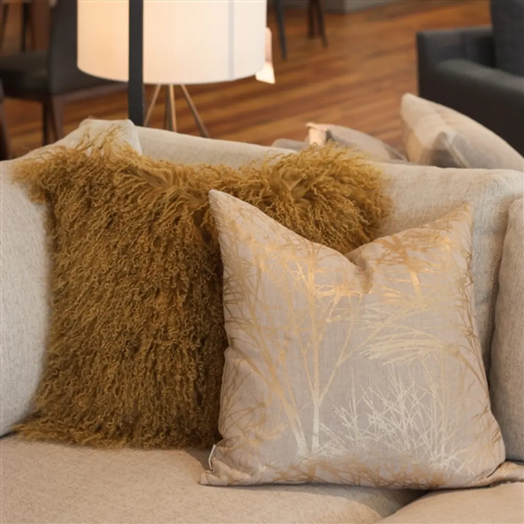 Mongolian Sheepskin Soft Gold Throw Pillow