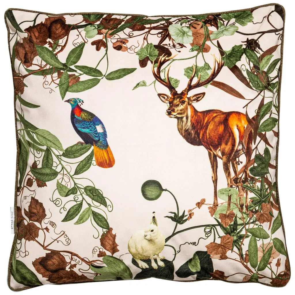 Mont Blanc Velvet Cushion With Forest Animals #3