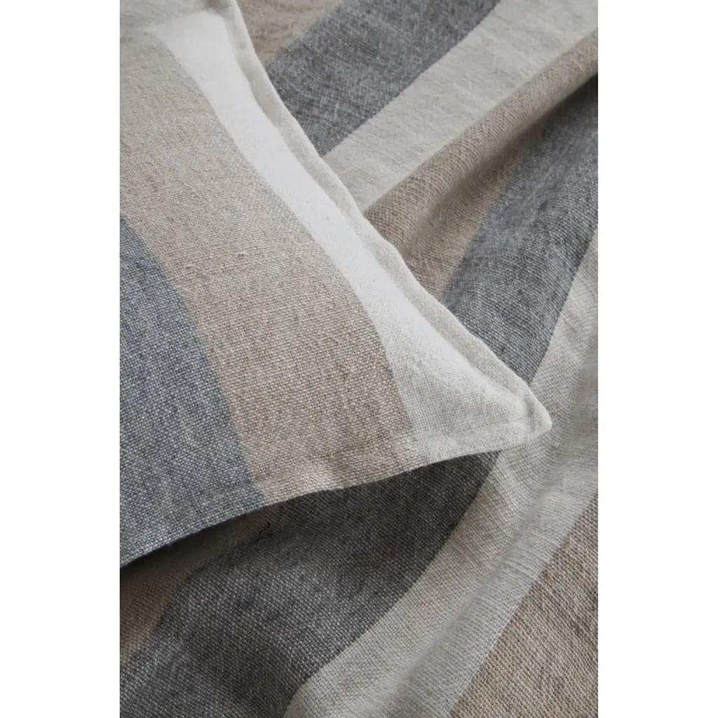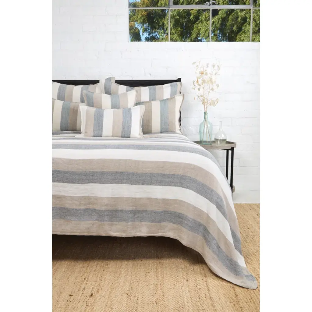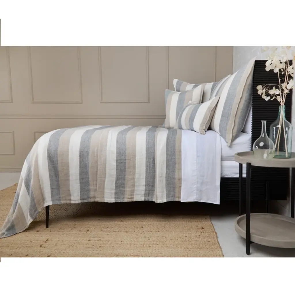 The Monterey collection is 100% hand-loomed, heavy-weight linen that features a 1/2" flange and broad coastal stripes.