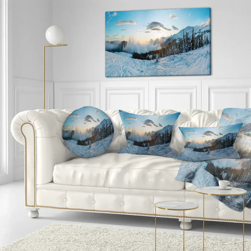 Morning Winter Carpathian Mountains Landscape Printed Throw Pillow, 12"x20"