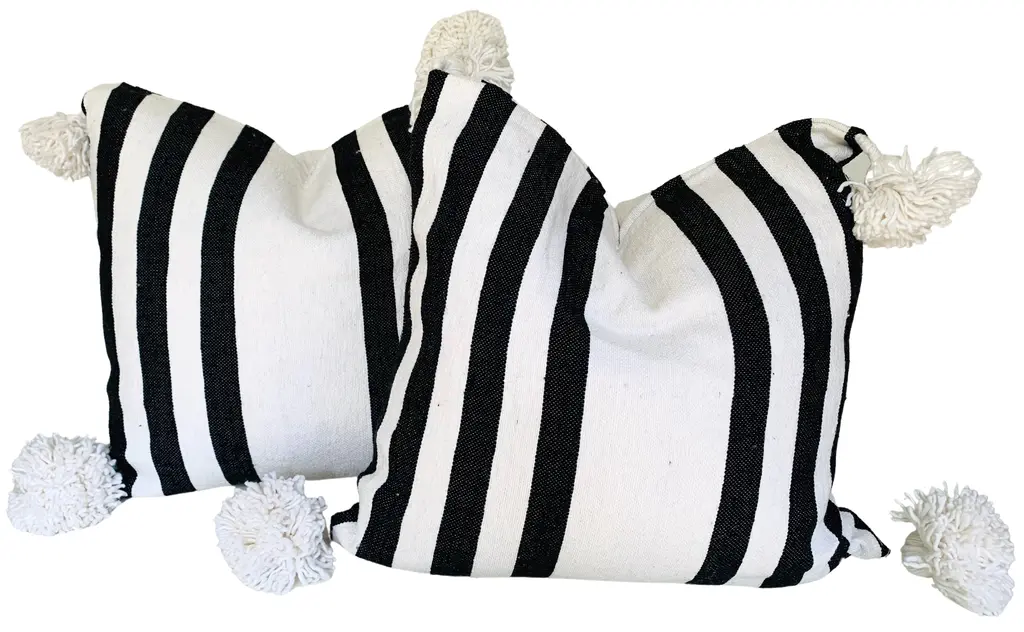 Moroccan Handloomed Pom-pom Pillows, Pr