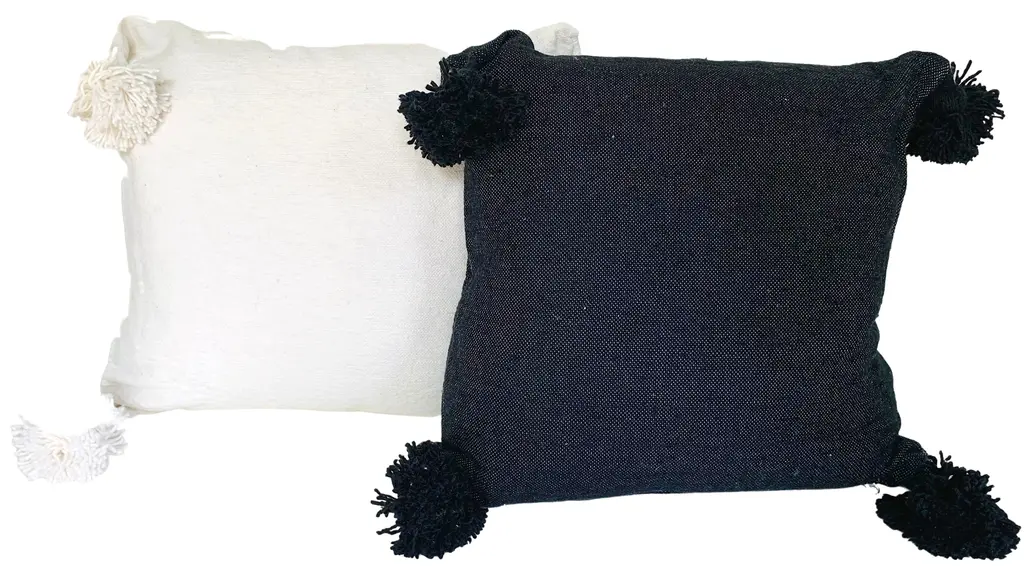 Moroccan Handloomed Pom-pom Pillows, S/2