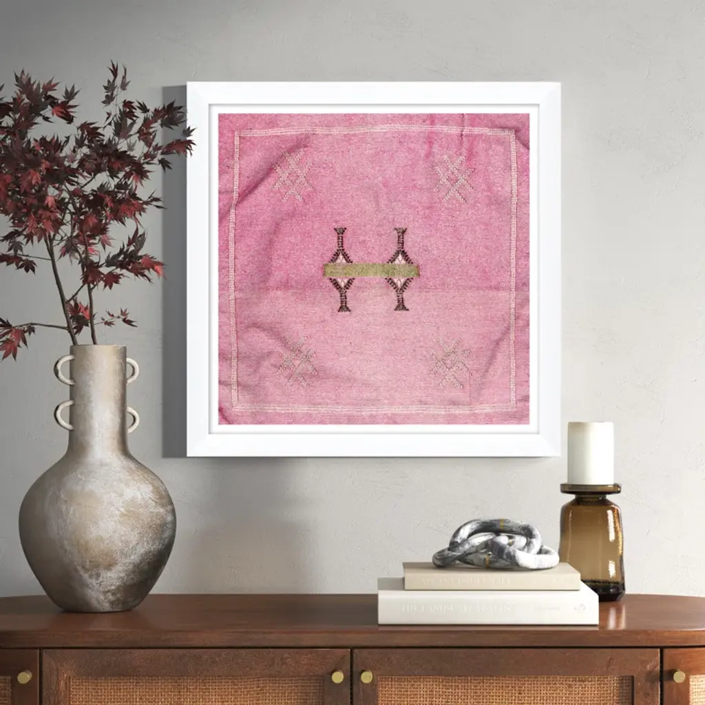 Ready to start your gallery wall? This framed photographic print on paper showcases a close-up view of a faded pink and tan pillow with stitched detailing. We love how this artwork adds an antique-inspired accent to your living room or office without overwhelming your decor. This piece is protected by a glass sheet and surrounded by a bright white frame. Plus, it comes with hardware for easy hanging.