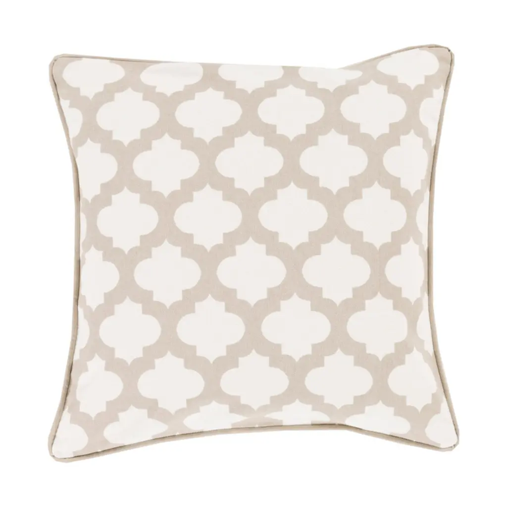 Moroccan Printed Lattice 20 X 20 Inch White And Taupe Throw Pillow