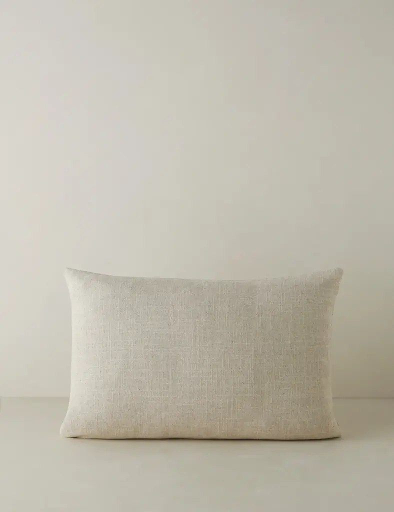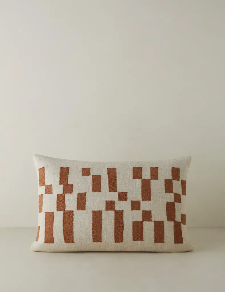 Élan Byrd is a Miami-based artist and textile designer whose tactile pieces celebrate the natural world. With a focus on texture and construction, this exclusive collection of accent pillows is inspired by Élan's natural fiber artwork. The organic motif of this linen throw pillow evokes the warp and weft of a woven mat to provide a grounding touch for any curation.