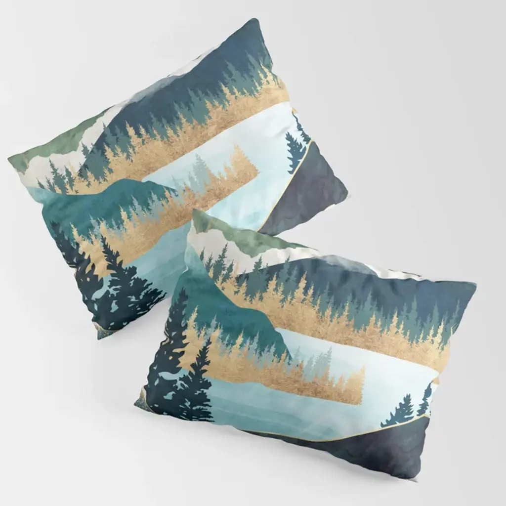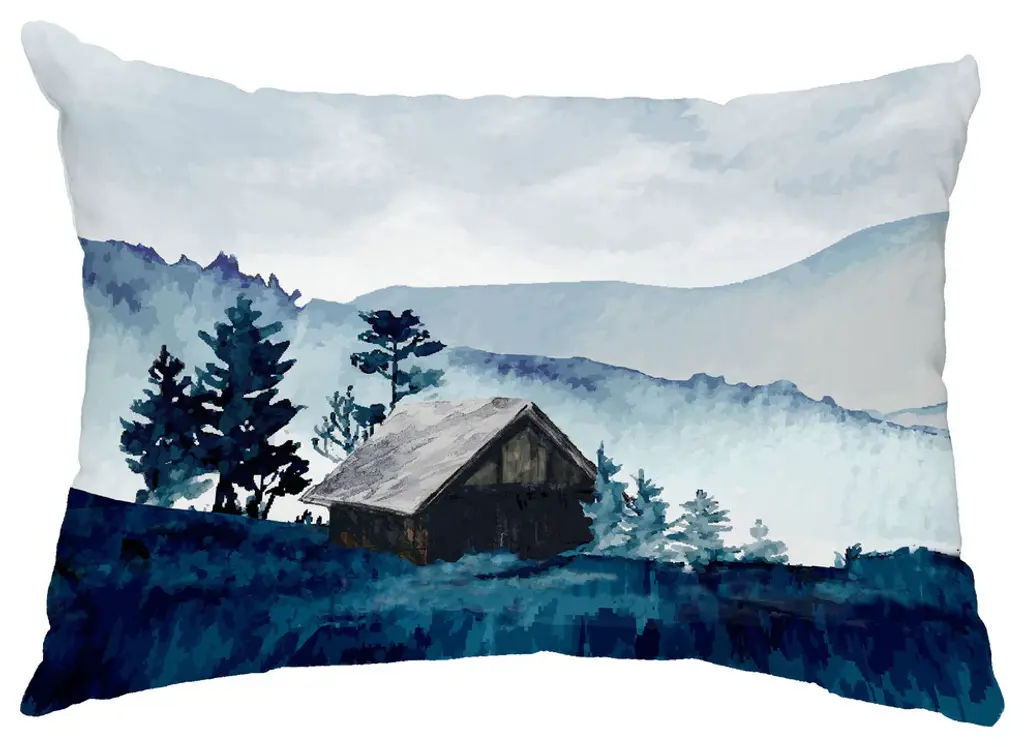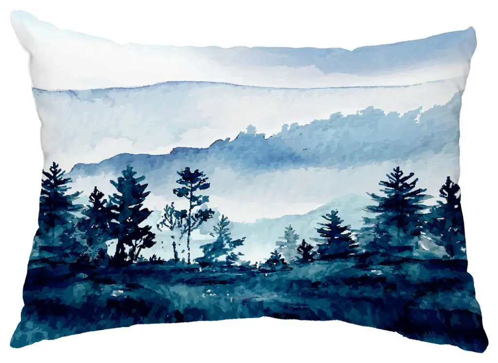 Mountain Forrest 26" Blue Holiday Print Decorative Throw Pillow