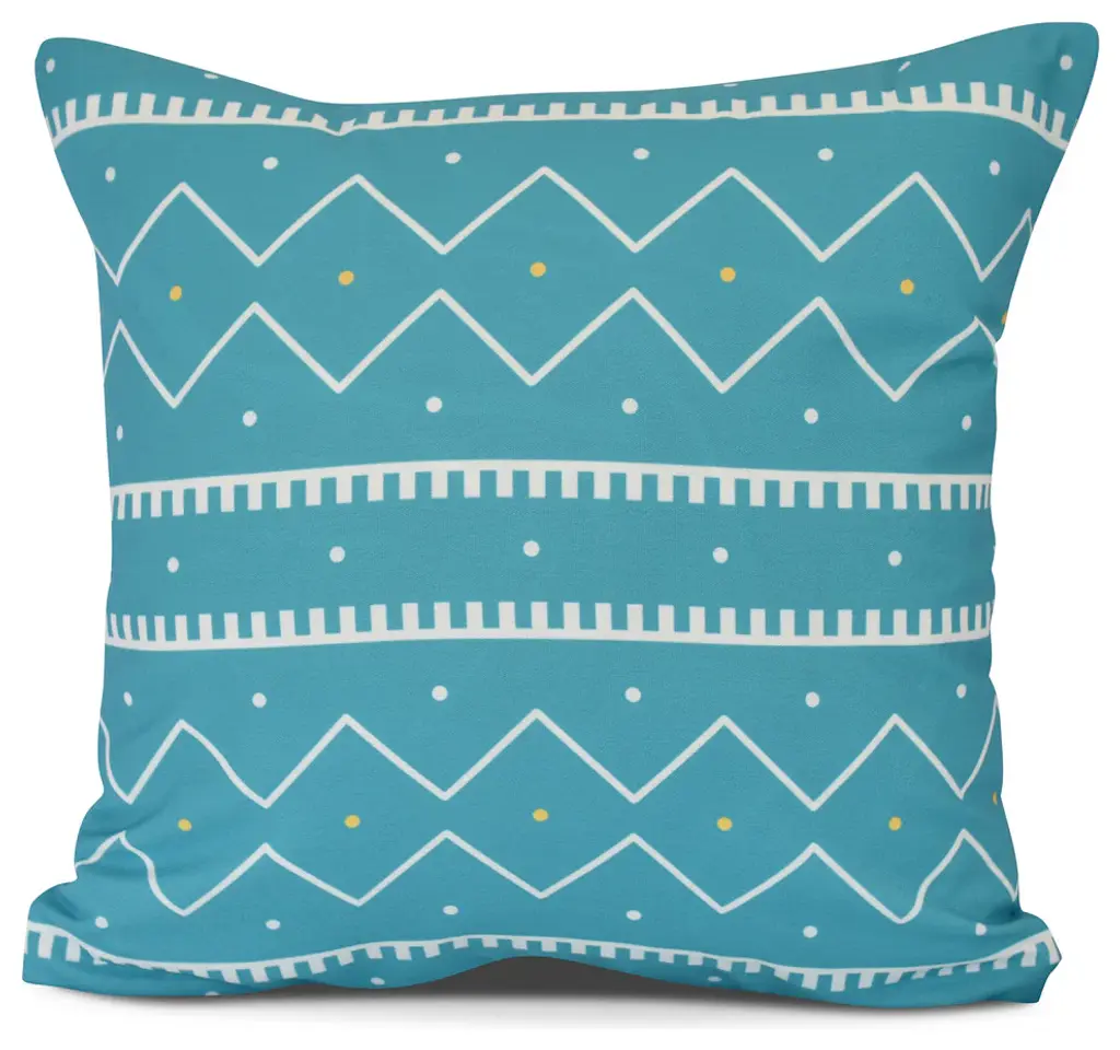 Mudcloth, Geometric Print Outdoor Pillow,turquoise,18 X 18 Inch