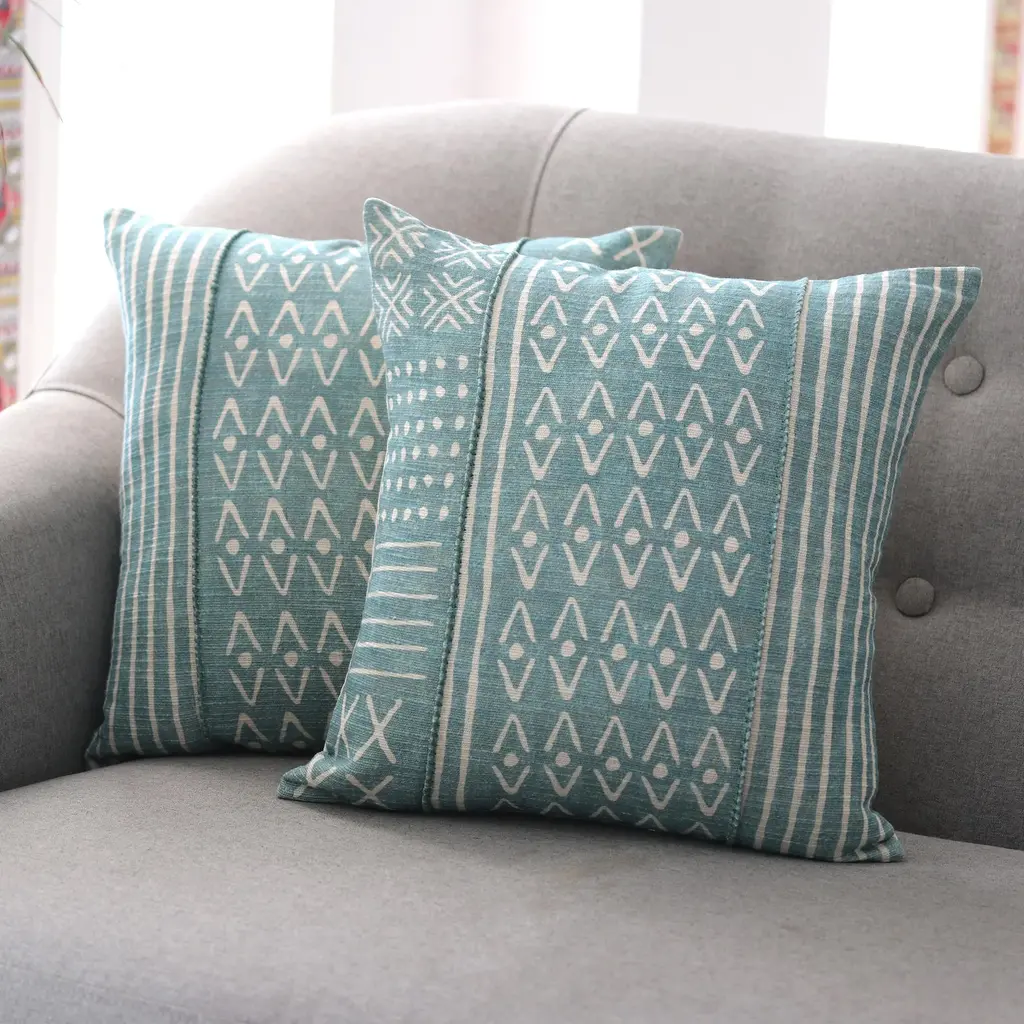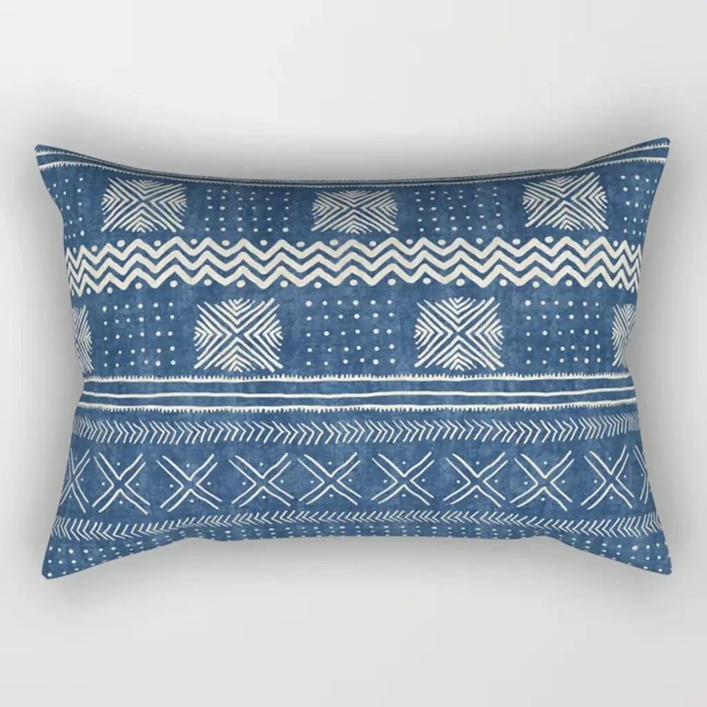 Mudcloth, Geometric Print Pillow, Navy Blue, 26" X 26"