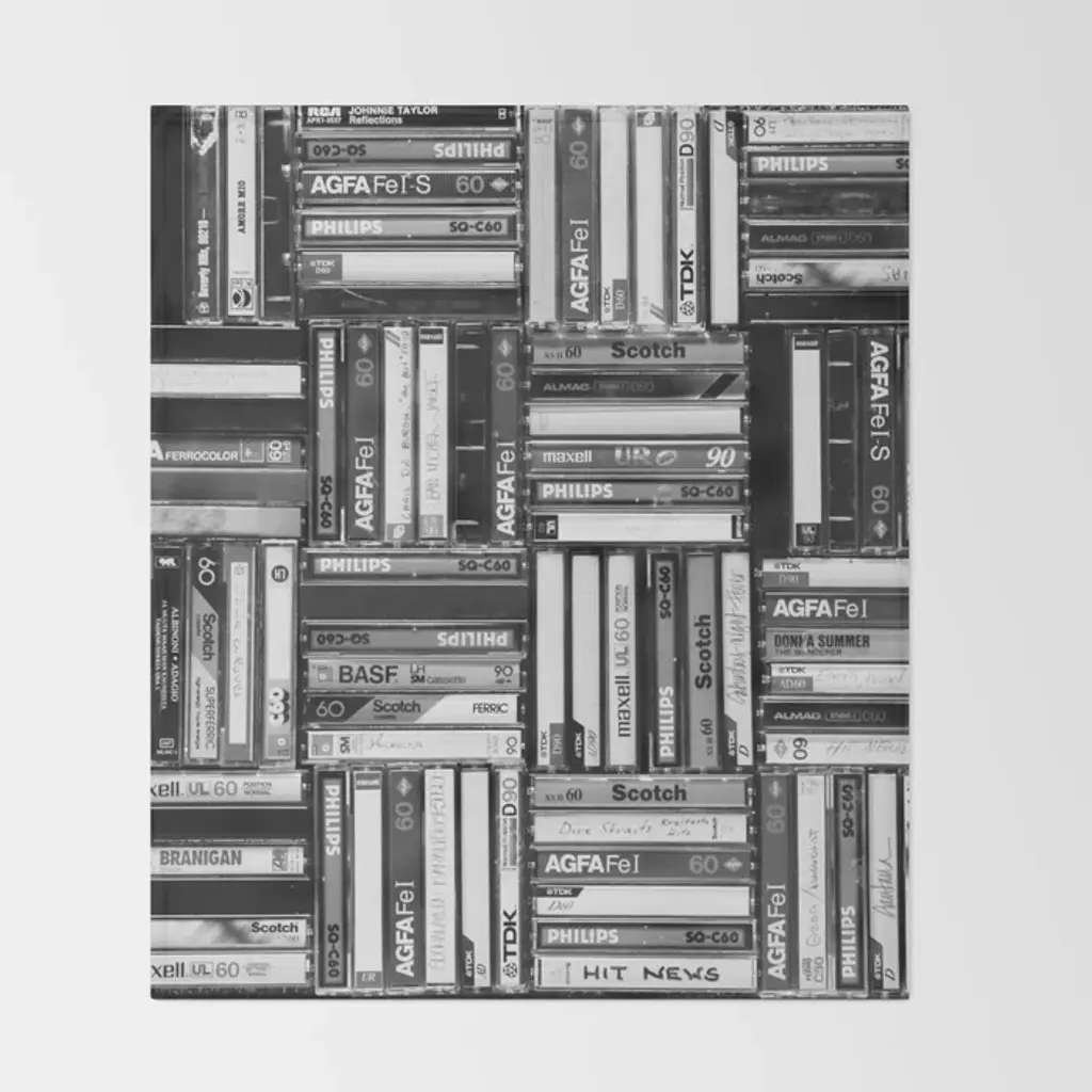 Music Cassette Stacks - Black And White - Something Nostalgic Iv #Decor #Society6 #Buyart Throw Blanket