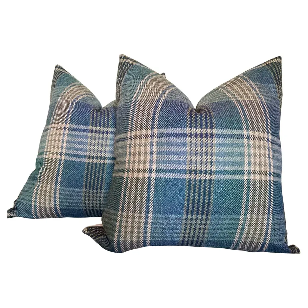 Muted Blue & White Homespun Linen Pillows, Collection Of Four Pillows