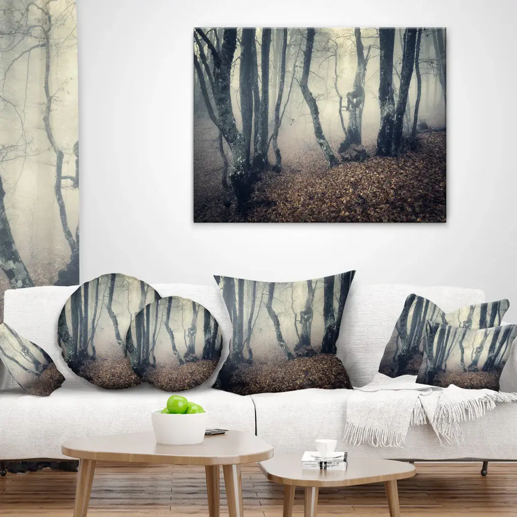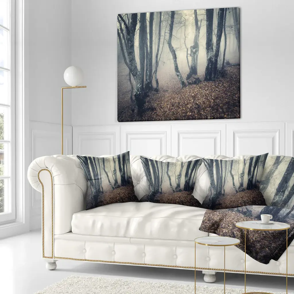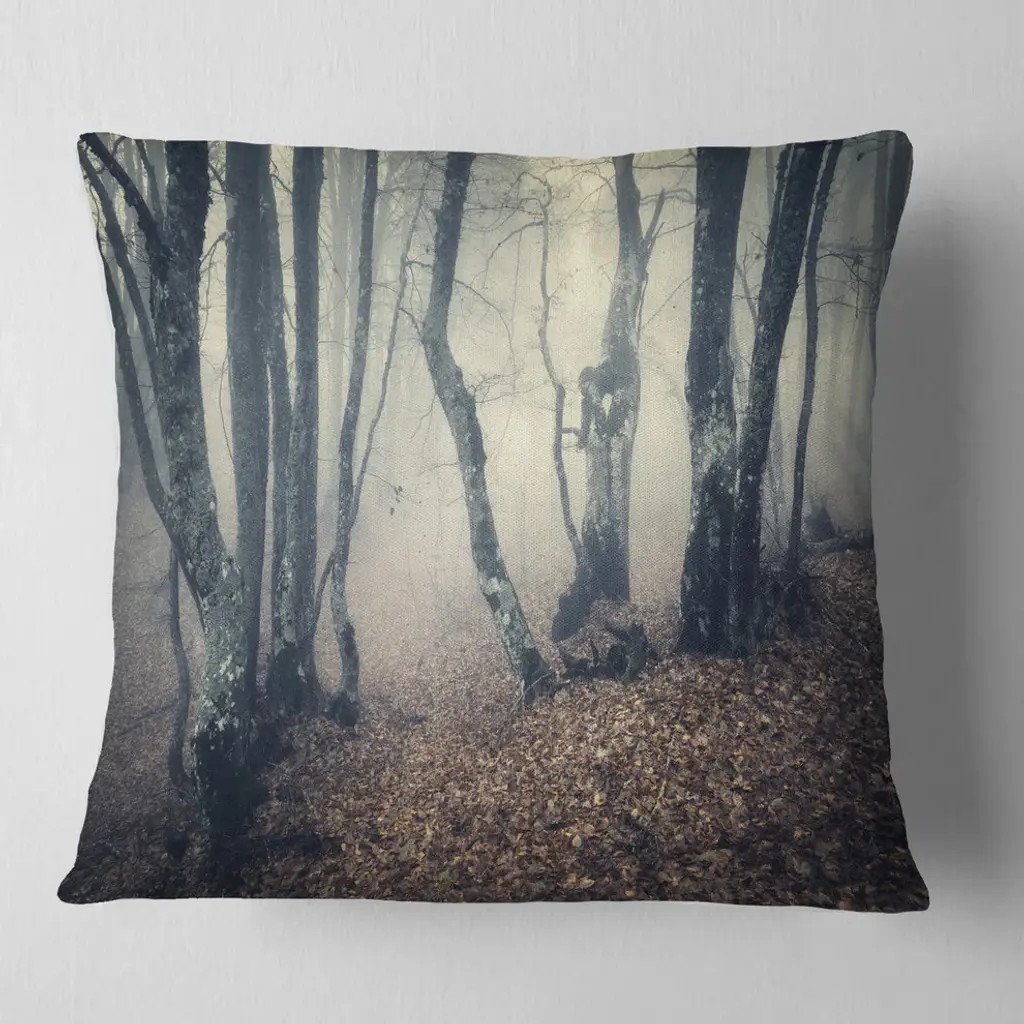 Mystical Yellow Fog In Fall Forest Landscape Photography Throw Pillow, 16"x16"