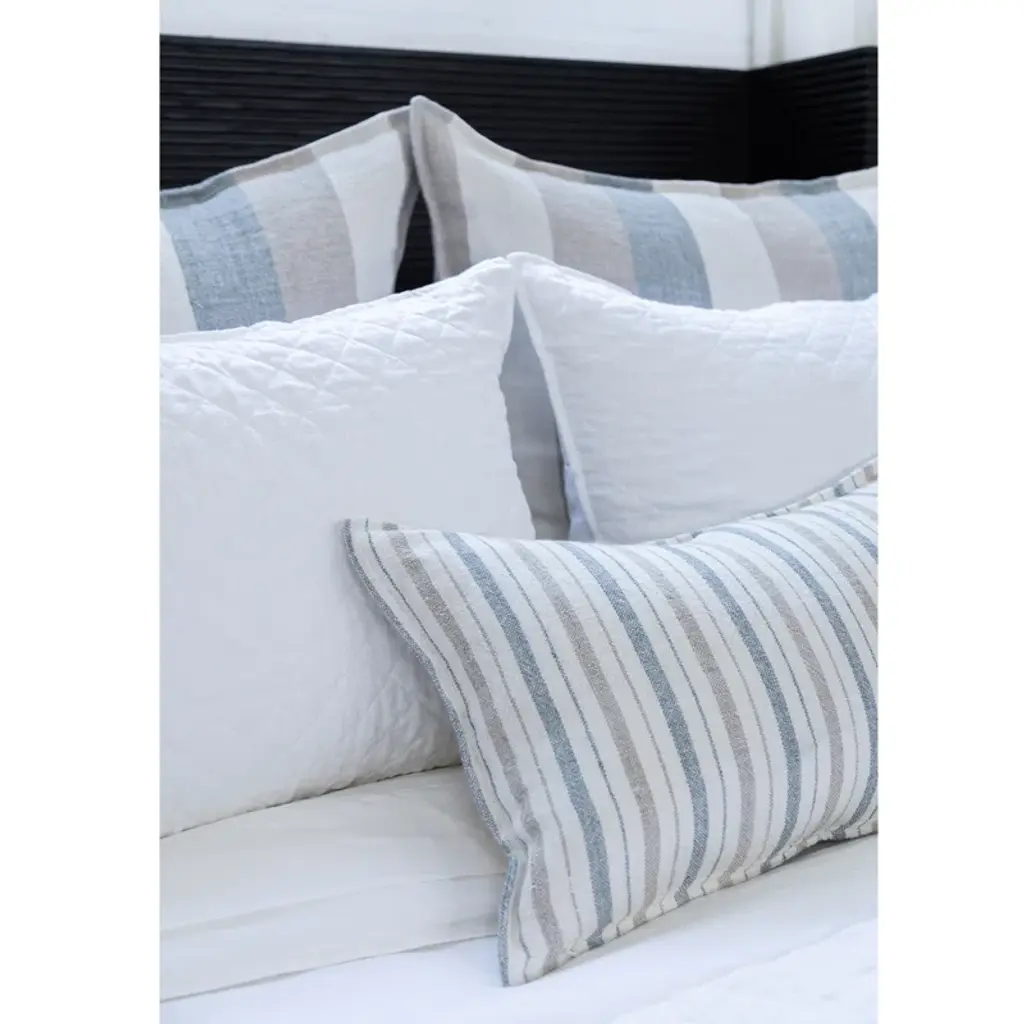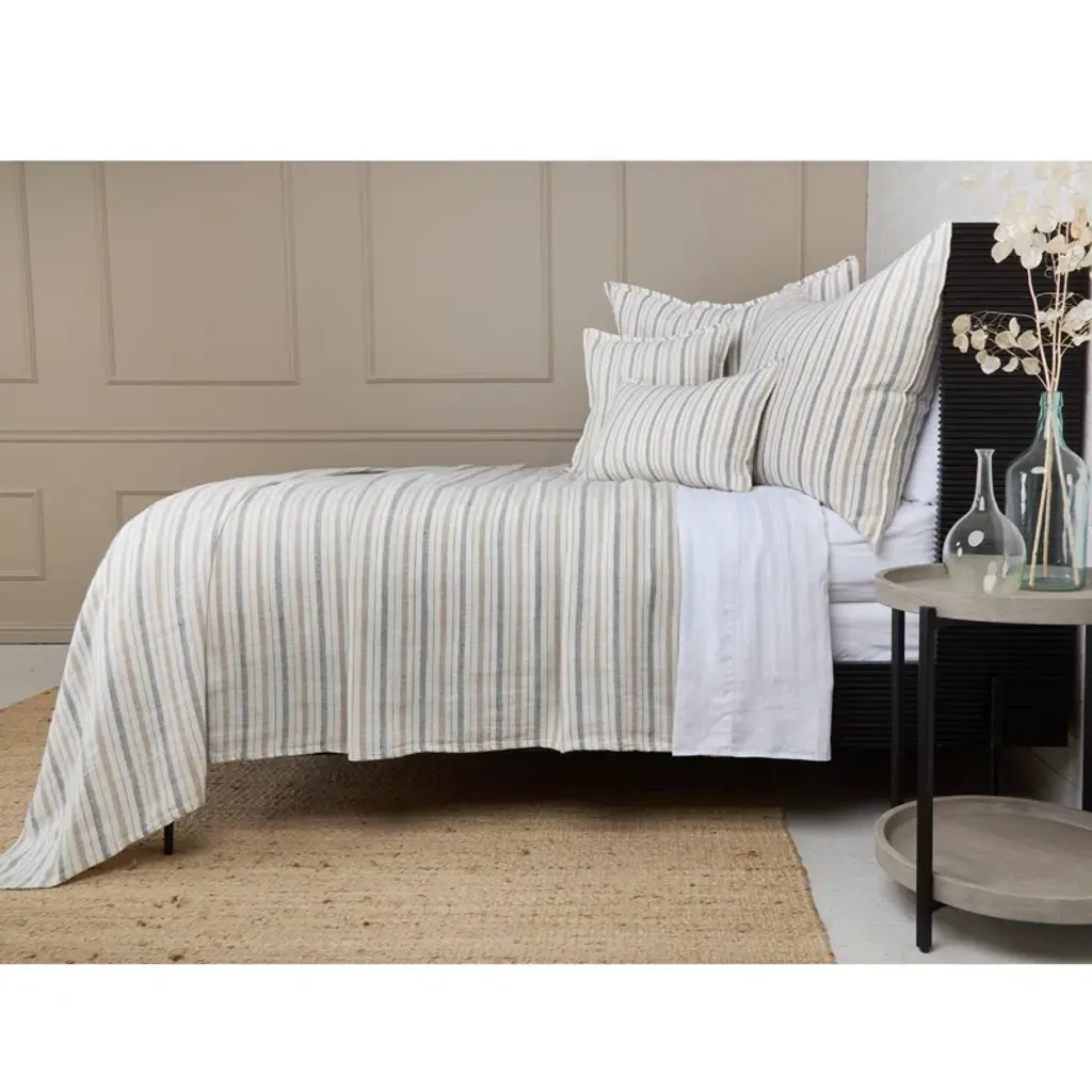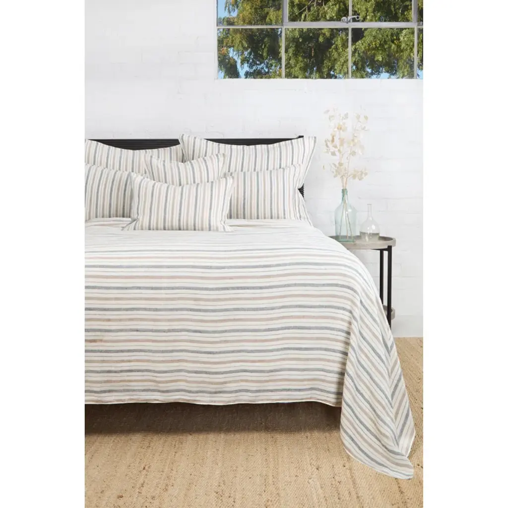 The Naples collection is 100% hand-loomed, heavy-weight linen that features a 1/2" flange and alternating thin and medium stripes of ocean and nature.