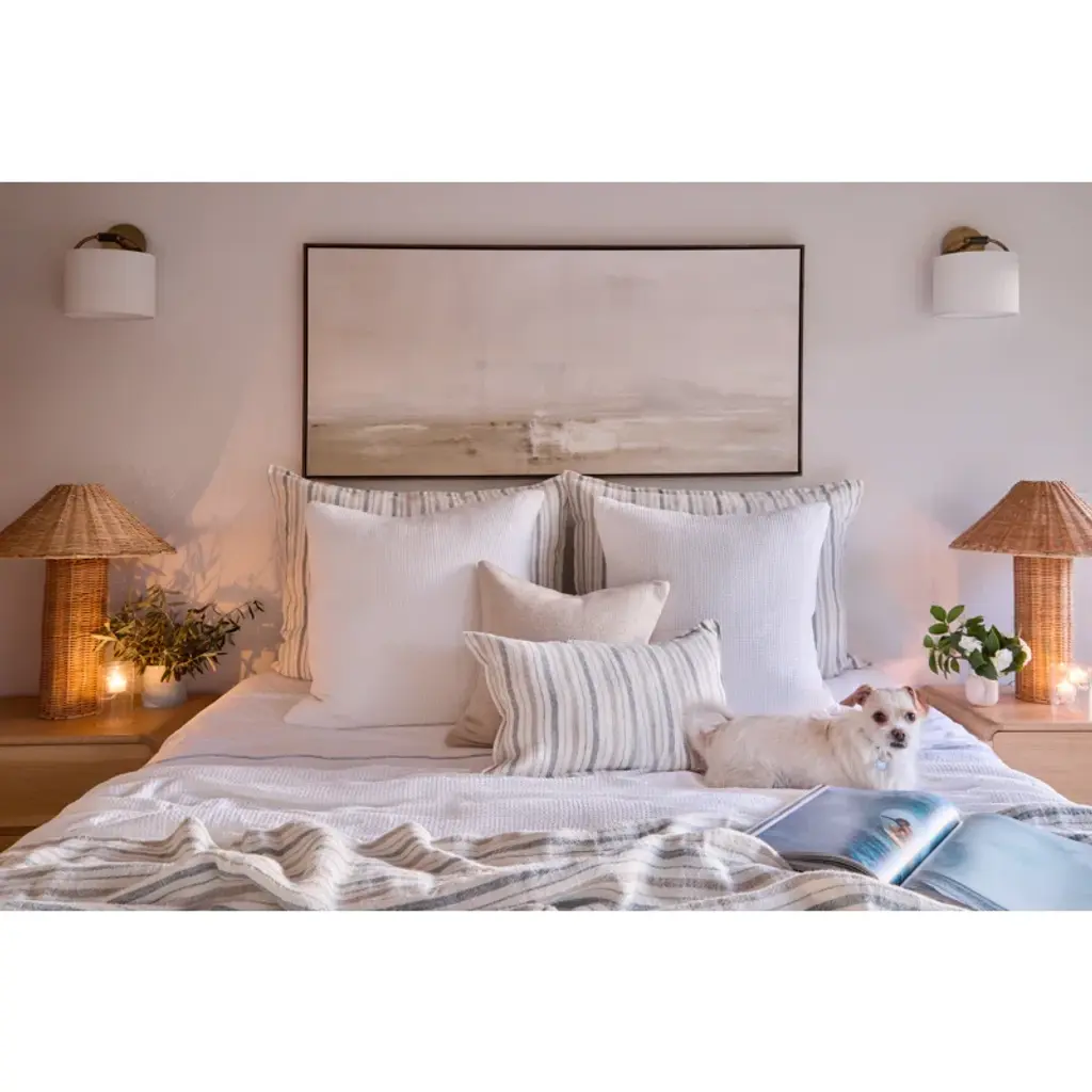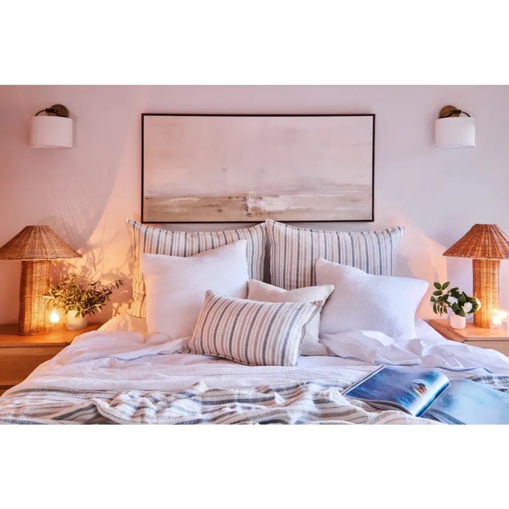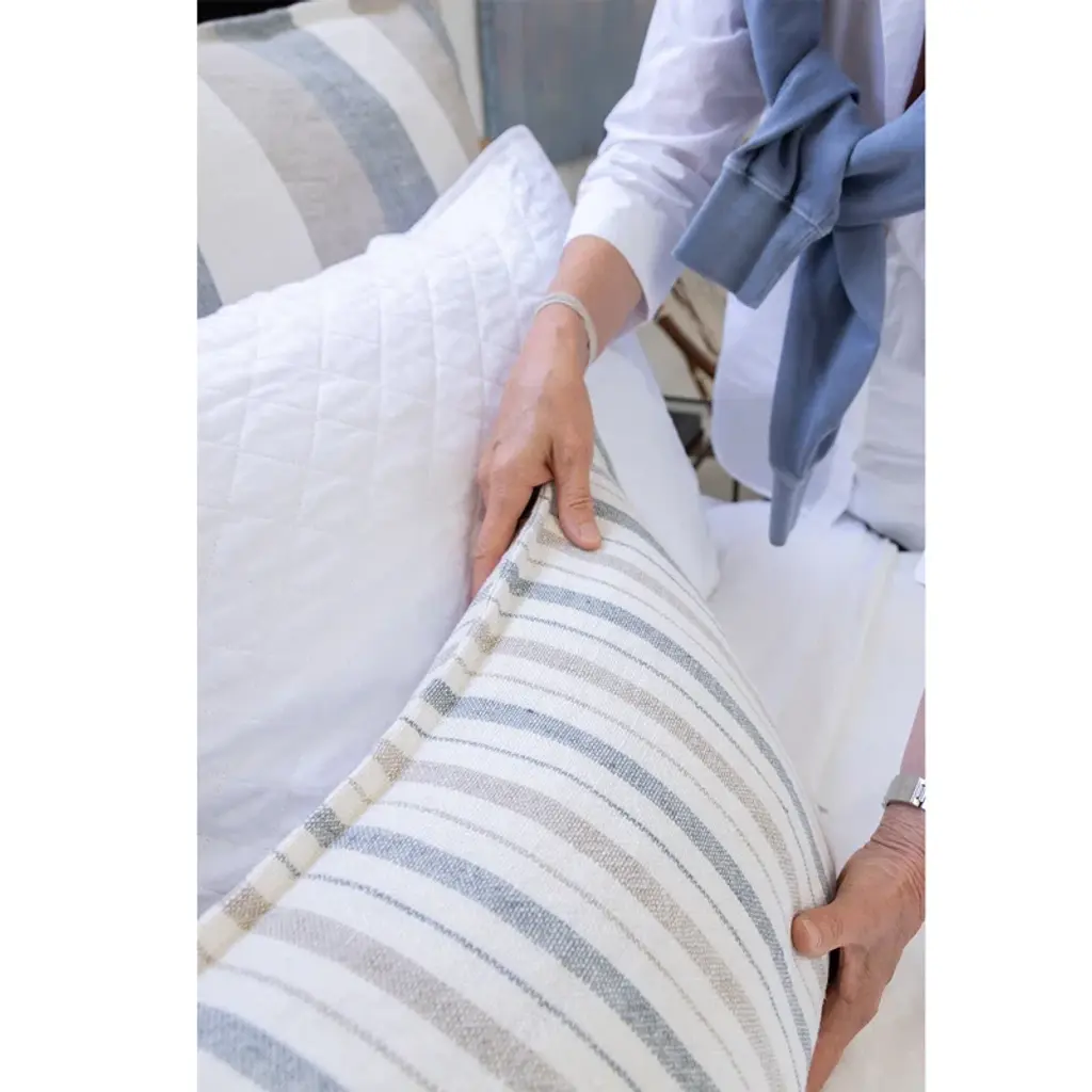 The Naples collection is 100% hand-loomed, heavy-weight linen that features a 1/2" flange and alternating thin and medium stripes of ocean and nature.