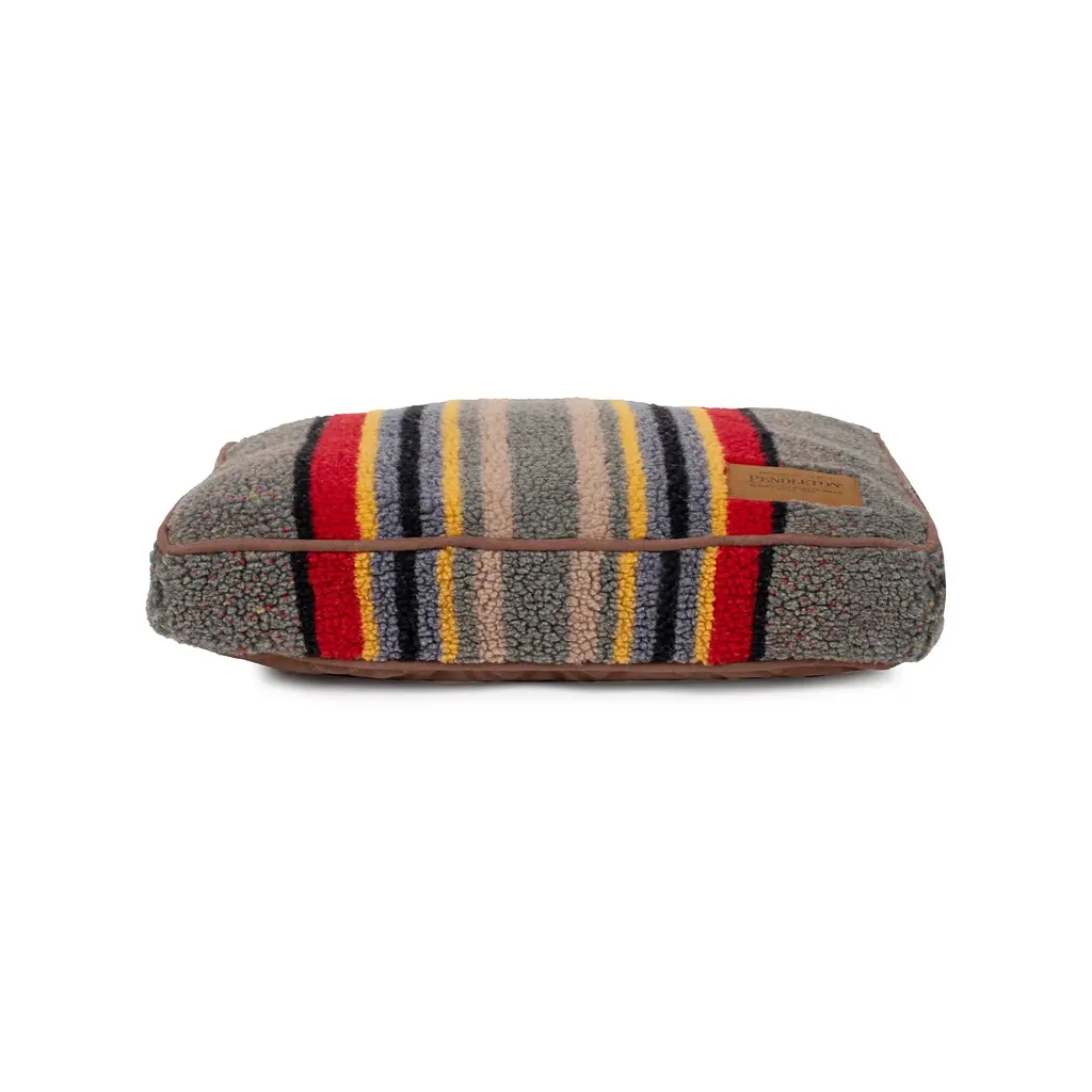As comfortable as they are beautiful, the Napper Pillow Beds sport a cozy shearling Berber cover with the distinctive Shinola brand stripe framed with contrast cording. A rugged cotton canvas underside takes on the wear and tear of different surfaces. Crafted from 60% acrylic and 40% poly, over-filled with recycled high-loft memory fiber polyester, welcomes comfort and support. The liner includes a unique channel design to keep the fiber from shifting and spreading. A concealed zipper allows the cover to be removed for easy machine washing. Finished with the Shinola label featuring their distinctive lightning bolt design.