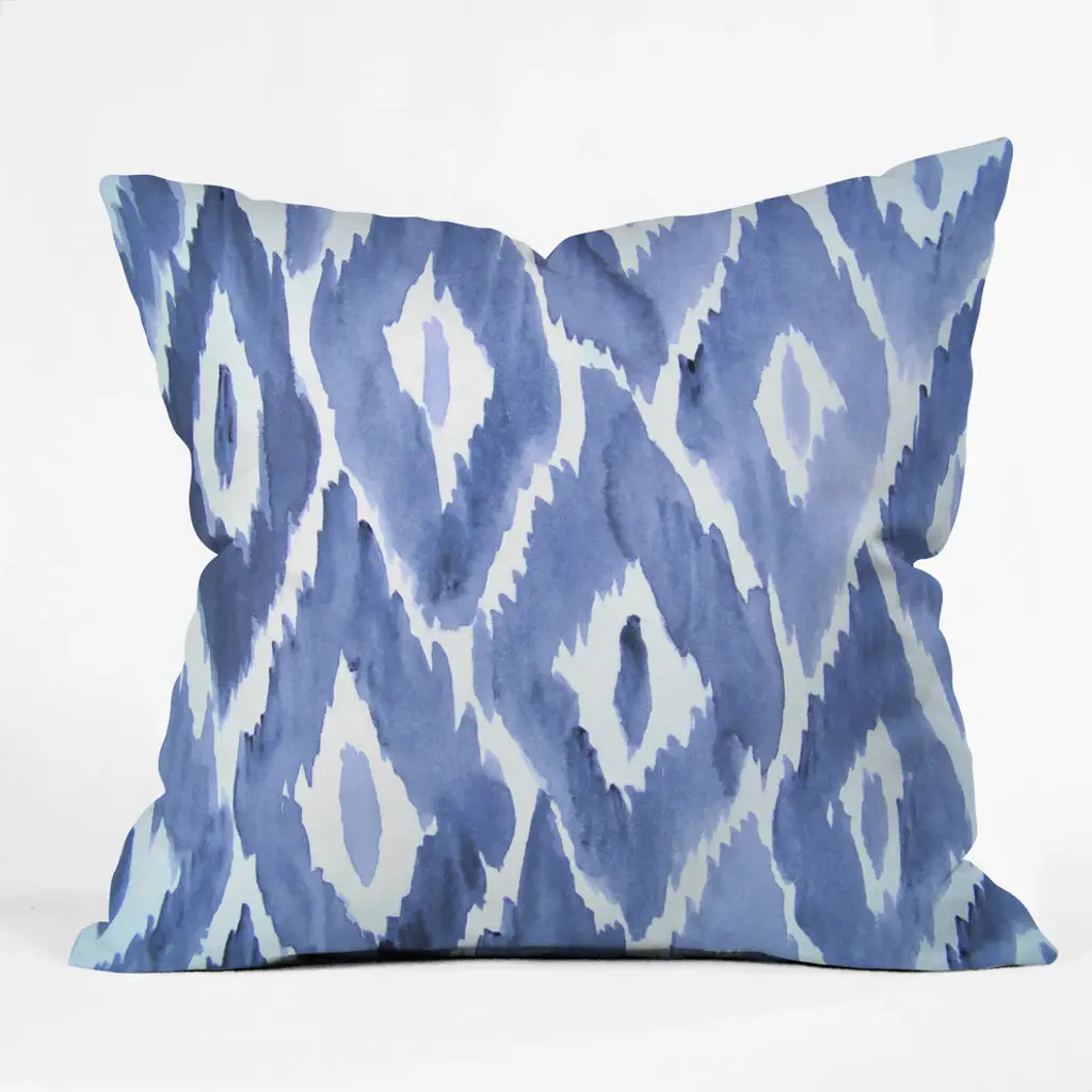 Natalie Baca Painterly Ikat, Indigo Throw Pillow, 16"x16"