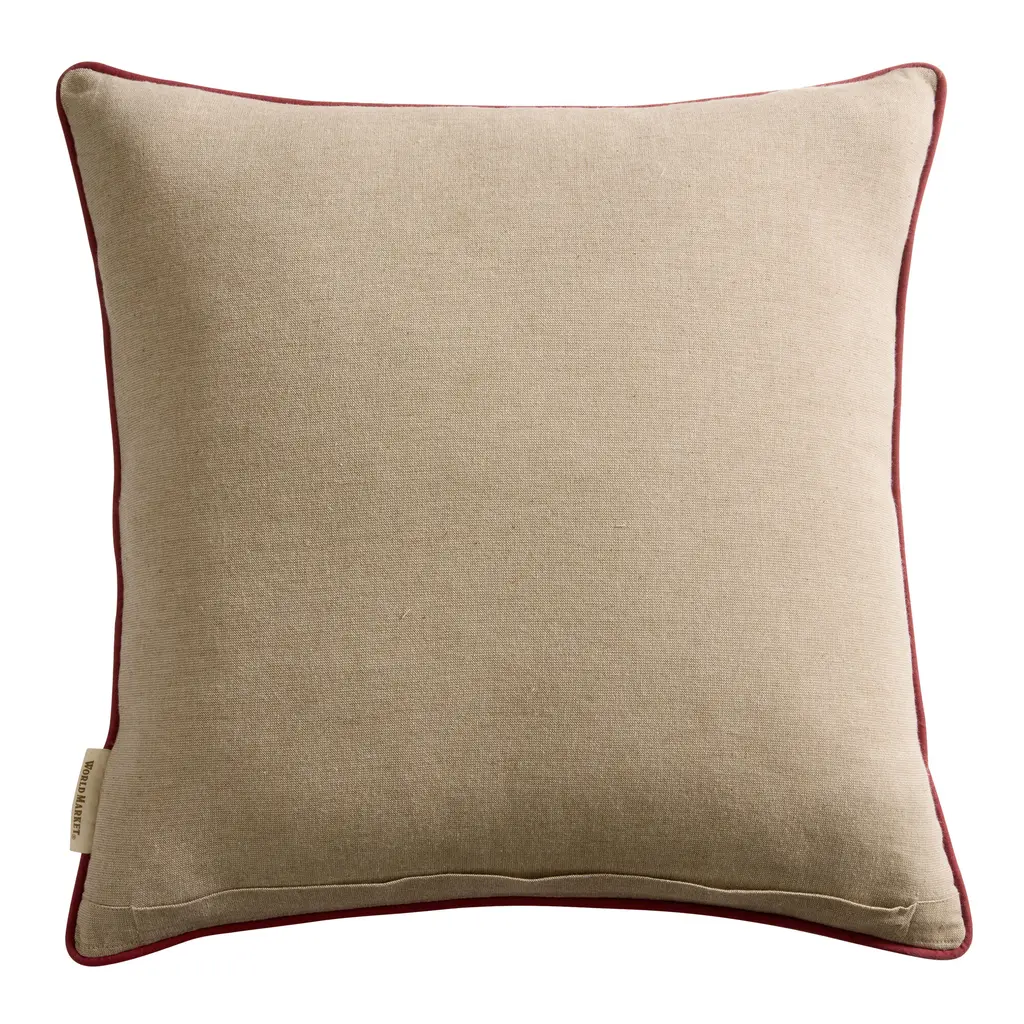 World Market is the destination handcrafted block-print decor, like this tree throw pillow complete with tiny gold beads and red piping. A carved wood stamp is inked with green and red colors and pressed onto a cotton and linen-blend fabric with careful precision by multiple skilled artists. As its layers are stamped one by one, the natural fibers absorb the ink to create slight variations on each pillow that add global character to your Christmas decor.