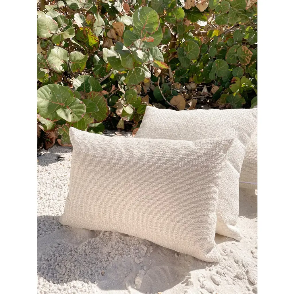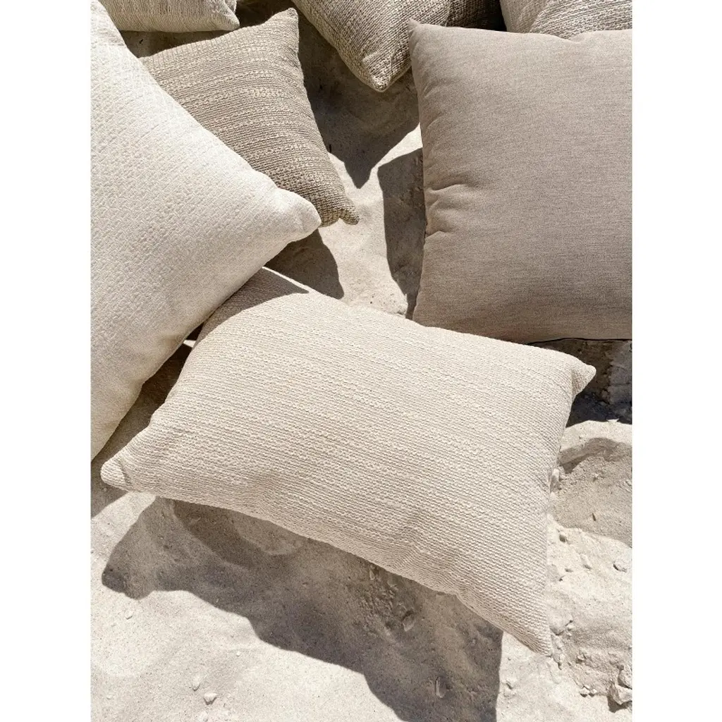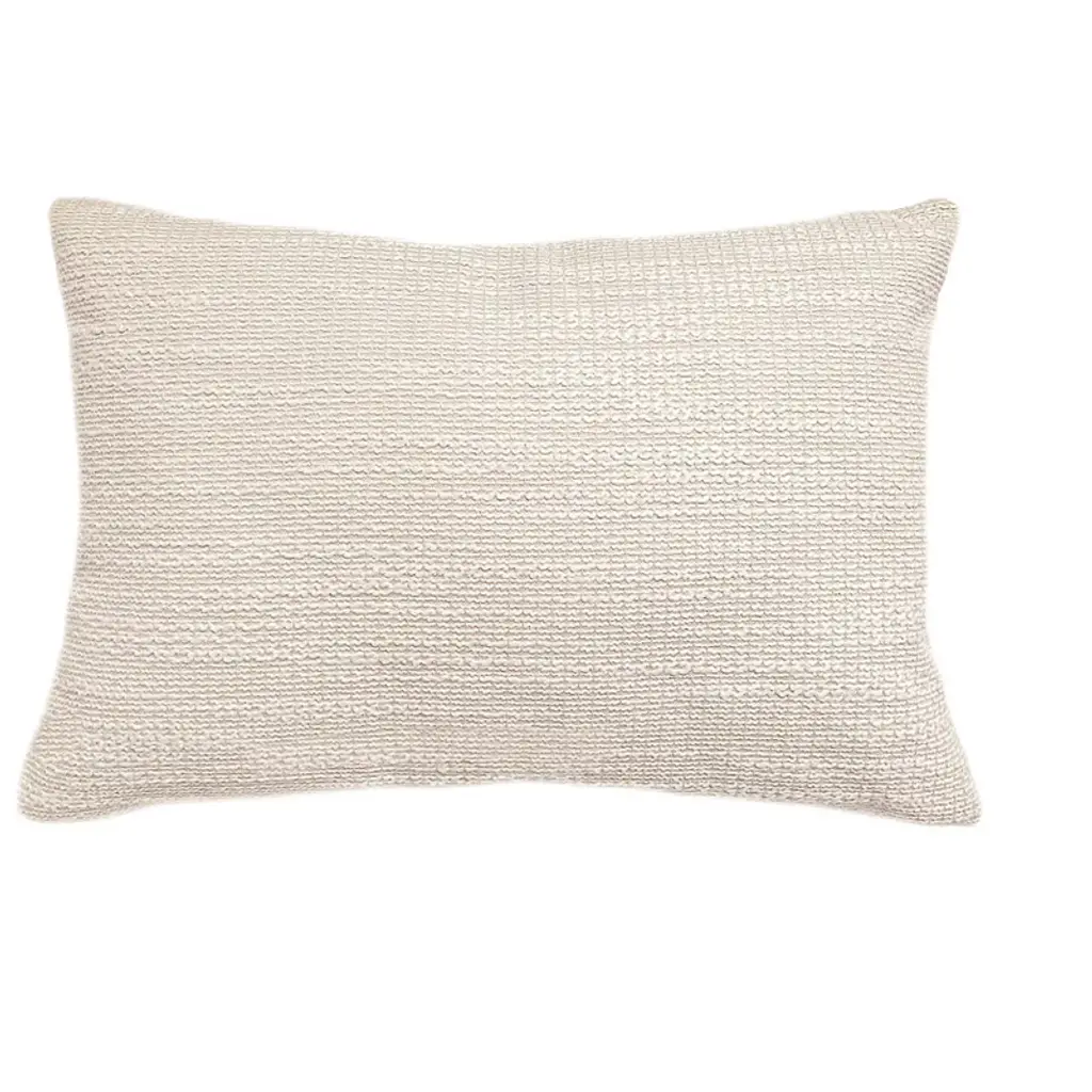 Introducing the Natural Waves Beige Indoor Outdoor Pillow, a soft and durable Acrylic fabric made with a unique technology that withstands tough weather conditions for many years to come.The Anaya Pure Air Collection features Indoor and Outdoor Pillows which are cut and sewn in our Miami, FL facility.PureAir Technology: Very soft Acrylic fabric suitable for Indoor or Outdoor use, UV-resistant, Quick-dry, 5-year Warranty. Color: Beige.Pattern: Slub yarns woven in variegated striped pattern in tonal shades of Beige.Size: 14"x20", 20"x20", 24"x24"Fabric: Soft 100% Solution Dyed Acrylic. Insert: 100% Polyester.Wash Instructions: Spot Clean or Machine Wash on Delicate using Cold Water only, Hang to Dry.Closure: Zipper on bottom edge.Made in the USA.