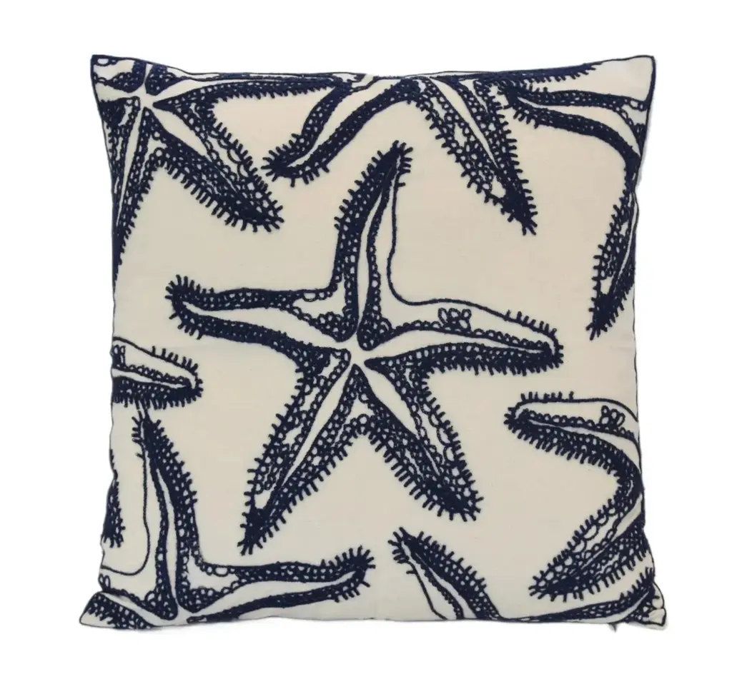 Nautical Coastal Beachy Woven Blue Starfish Shell Feather/down Pillow 19” Square