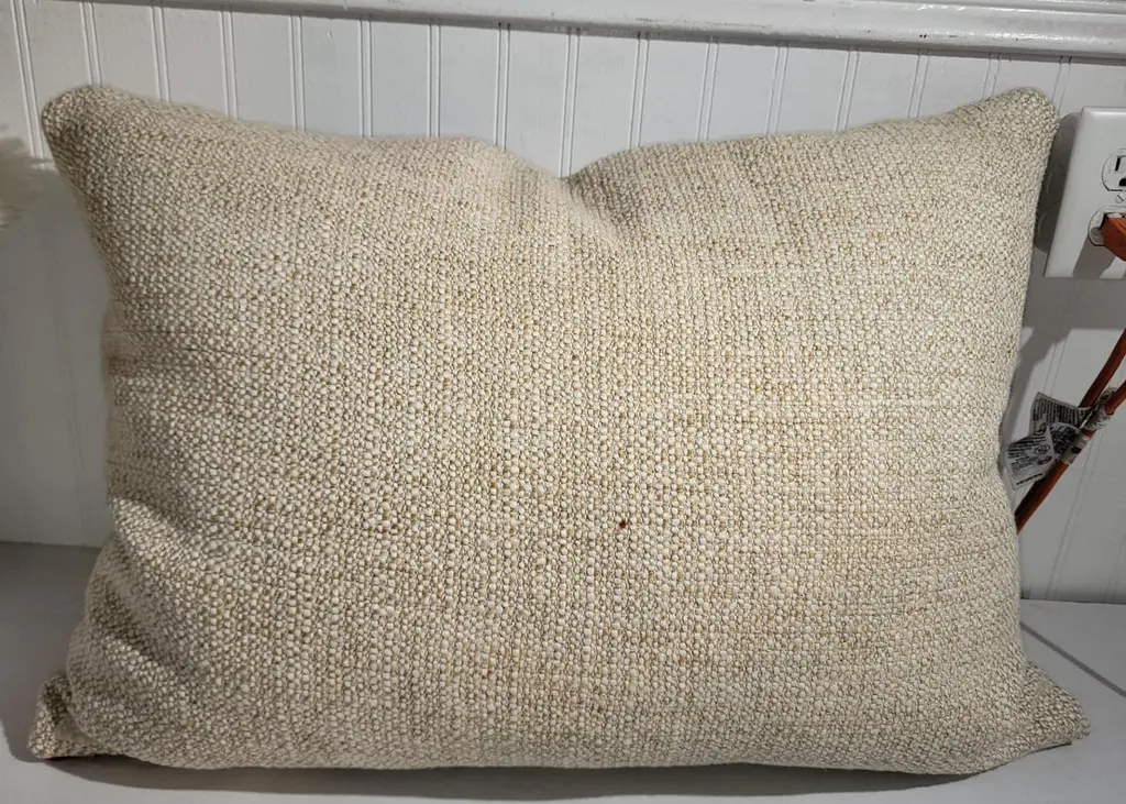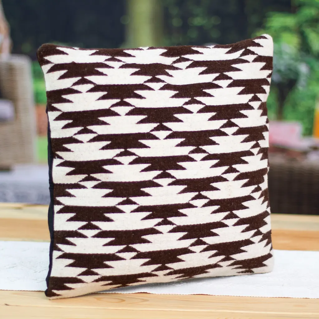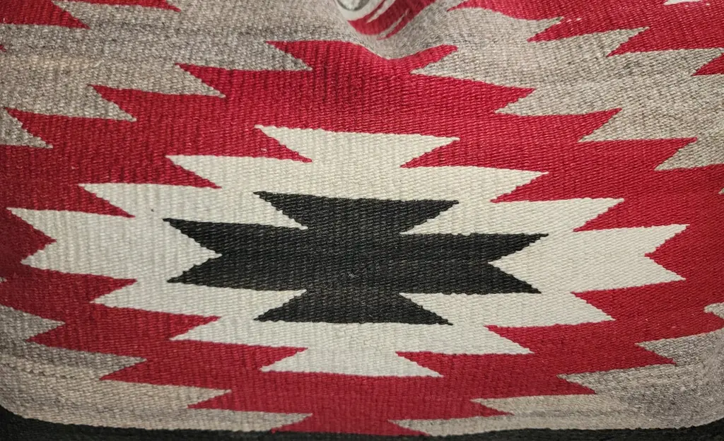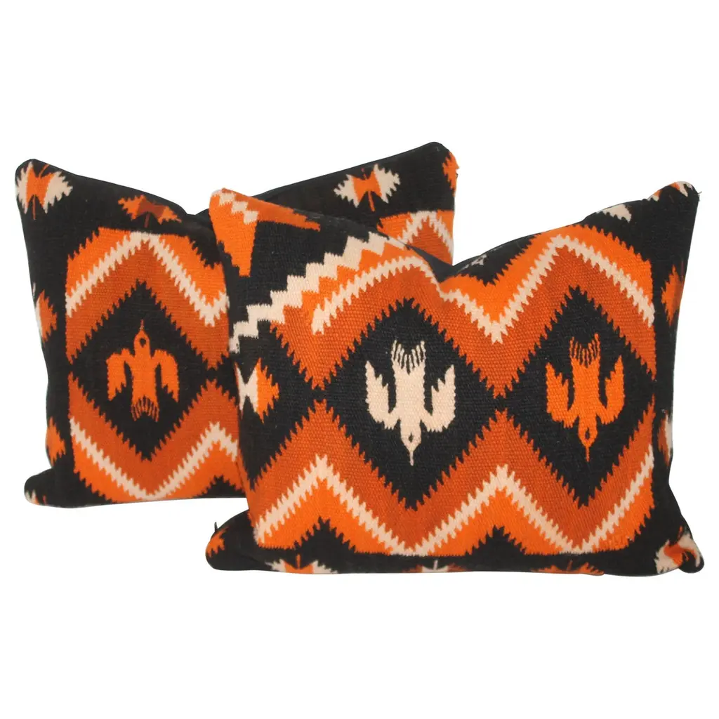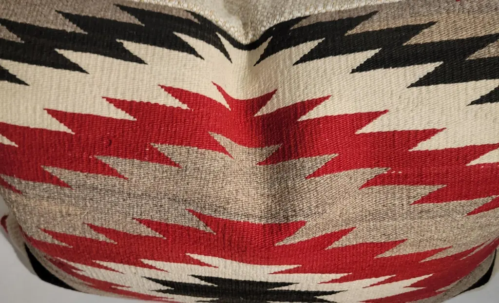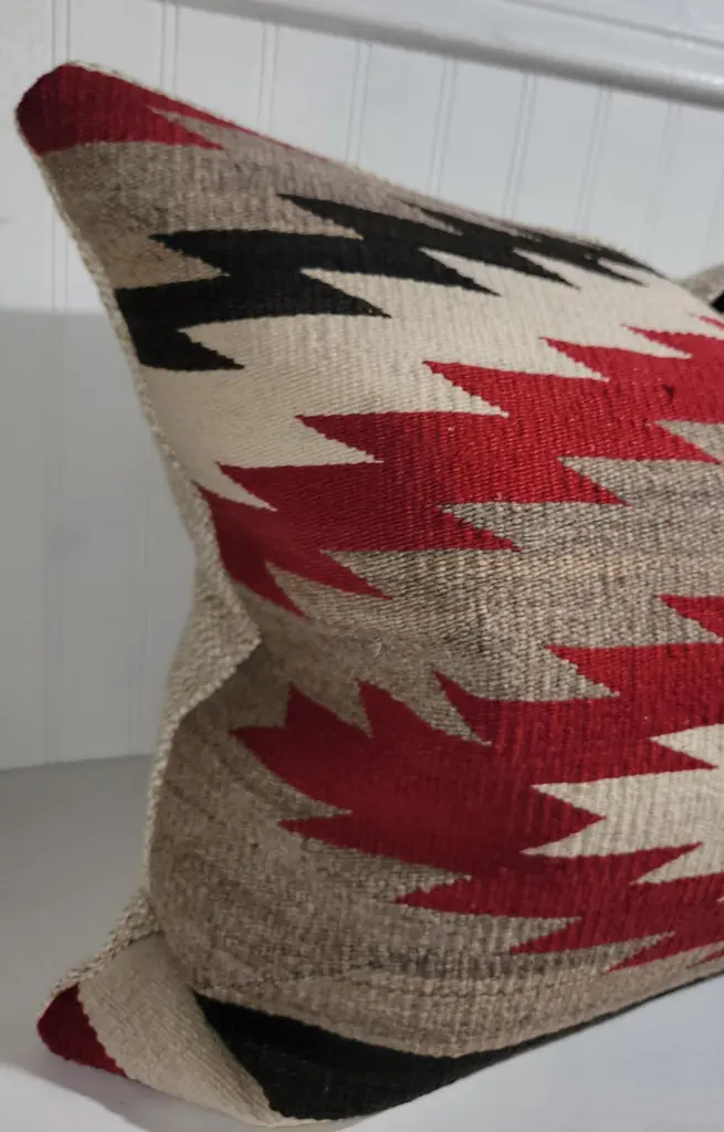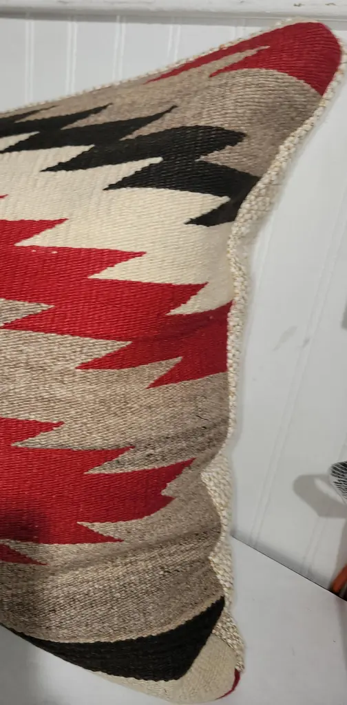 Large Navajo weaving pillow in a eye dazzler pattern in fine condition.The backing is in a linen fabric & down&feather fill.