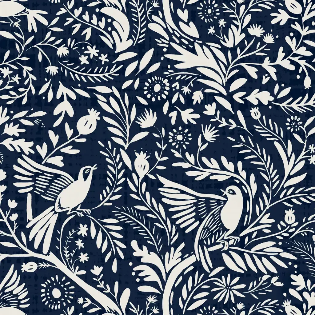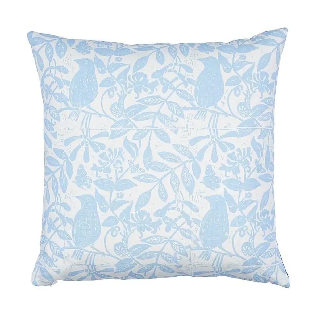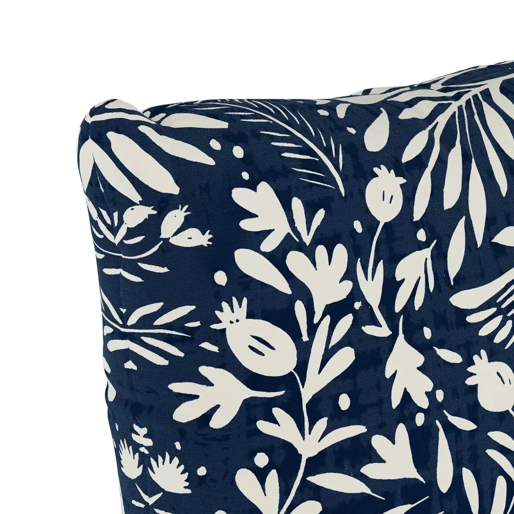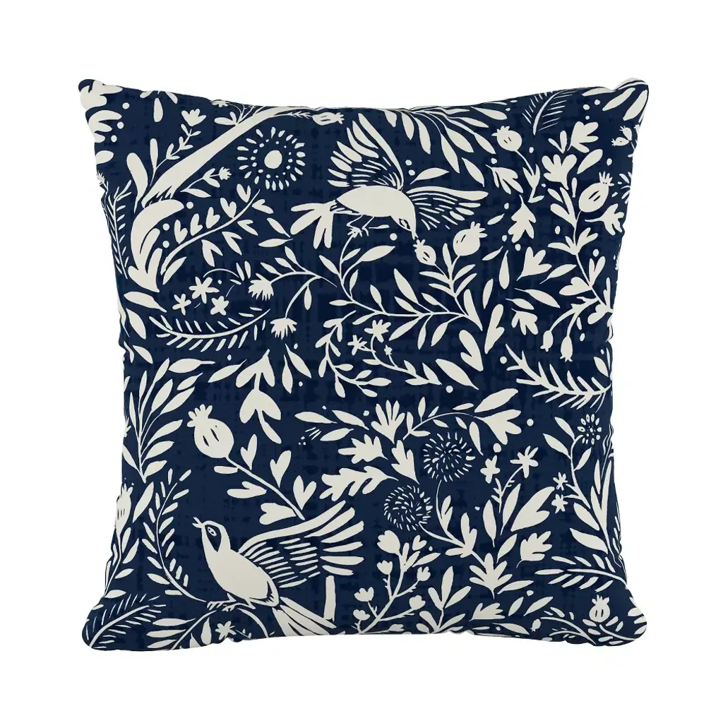 Navy Bird Print Throw Pillow - Skyline Furniture: Linen & Cotton Blend, Indoor Decorative Cushion With Zipper