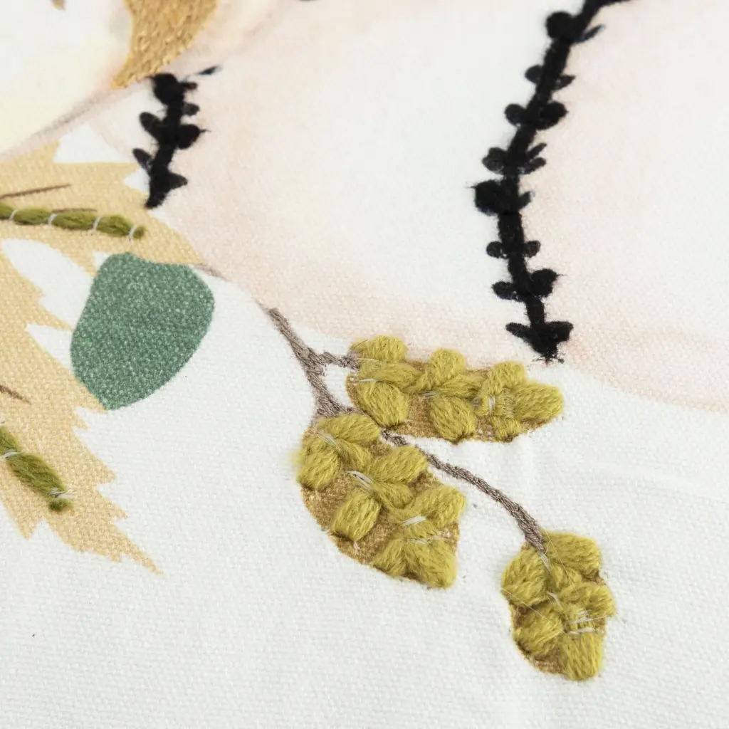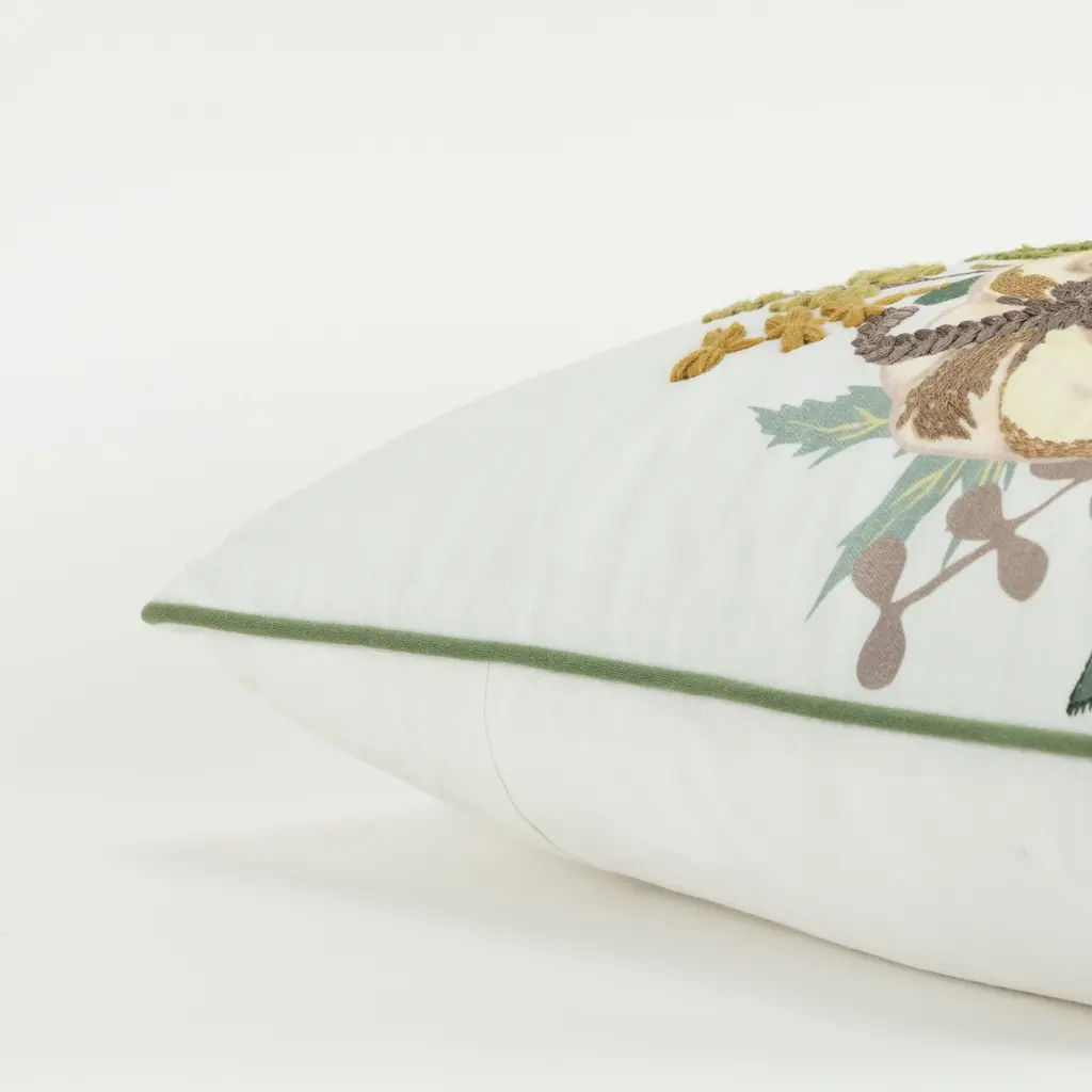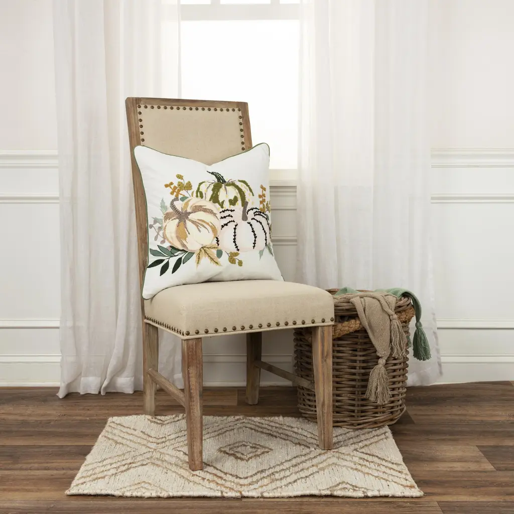 Experience the perfect blend of artistic flair and functional design with this autumn-inspired accent pillow. Inspired by the beauty of fall and the changing of seasons, this 20" x 20" decorative pillow showcases a charming pumpkin motif with intricate details and textured variance to create a visually captivating piece that will enhance the ambiance of any decor. Crafted from high-quality cotton duck fabric, this pillow offers both durability and an ultrasoft touch, with welted edges for a refined finish. With a touch of modern farmhouse elegance, the hand-embroidered details on this pillow are truly remarkable. Each stitch is carefully executed, showcasing elite craftsmanship. The subtle color palette of Green, Blush, Ivory, Gold, and Tan hues will complement a wide range of interior styles, making it a versatile addition to any living space. The matching solid cotton back ensures a polished look from every angle with a hidden zipper closure for easy fill. Elevate your home decor with this exceptional piece and embrace the beauty of autumn in style.