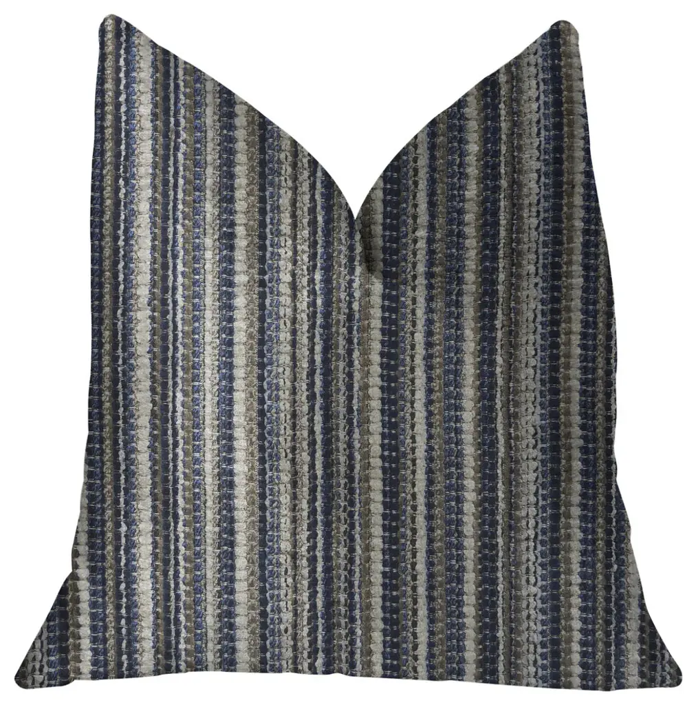 Bring this eye-catching, edgy and sumptuous statement piece to your room. Add a great conversational piece in the house with this new hampton ivory and blue luxury throw pillow. The fabric of this luxury pillow is a blend of Polyester.• Colors: Ivory and Blue• Fabric Origin: China. Pillows are Handmade in USA• Double Sided pillow• Invisible zipper enclosure for a tailored look• All seams are over-locked and stitched for a professional finish• Pattern placement may vary slightly• Pillow measurements are seam to seam from the inside• Pillows include • Made in USA• Hypoallergenic Down Alternative Polyfill Insert• Dry Clean recommended• Fabric Content: 100% Polyester• Pattern: Striped