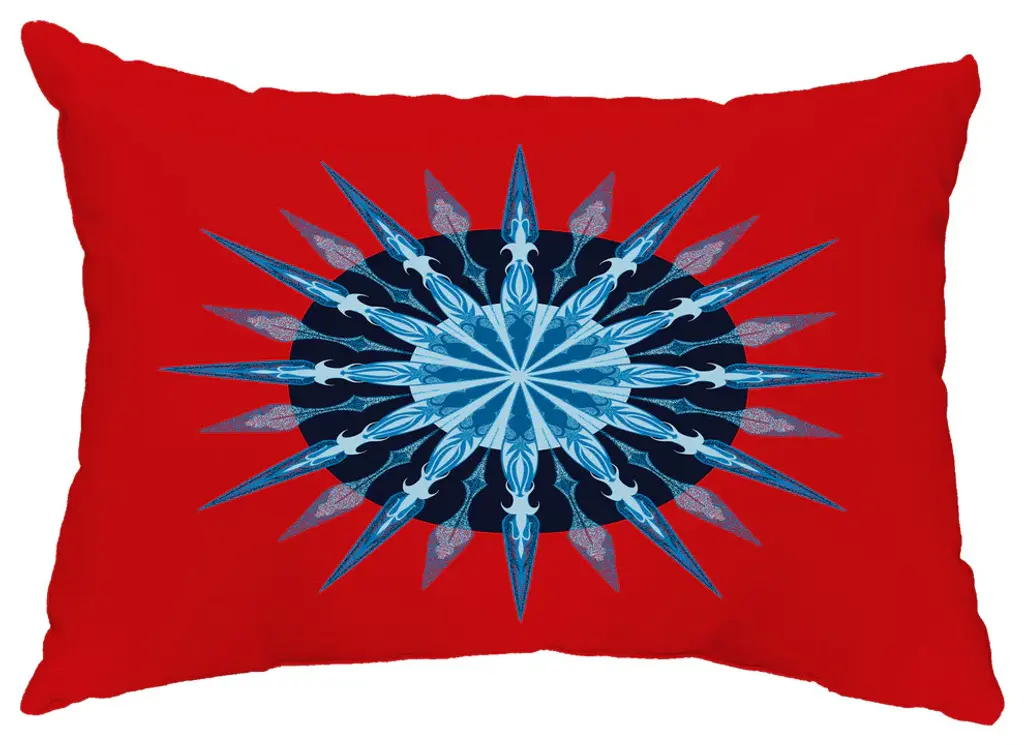 Night Star, Geometric Print Outdoor Pillow, Red, 16" X 16"