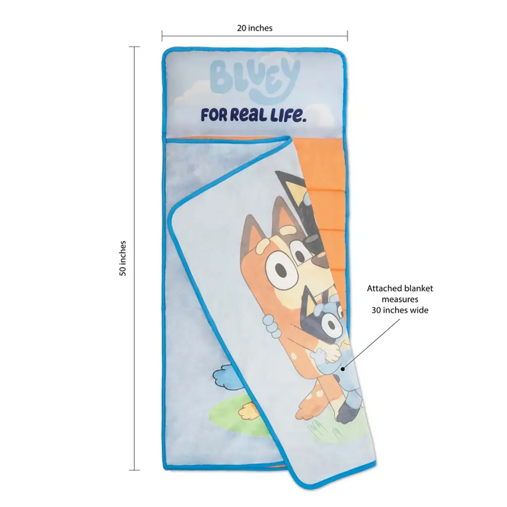 Nojo Bluey For Real Life Toddler Nap Mat - Includes Attached Pillow And Fleece Blanket