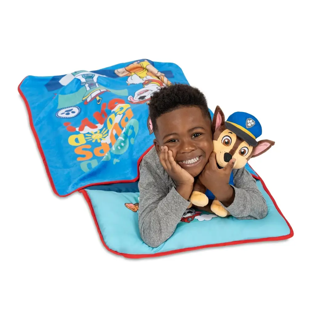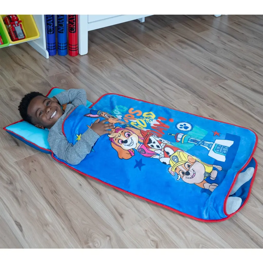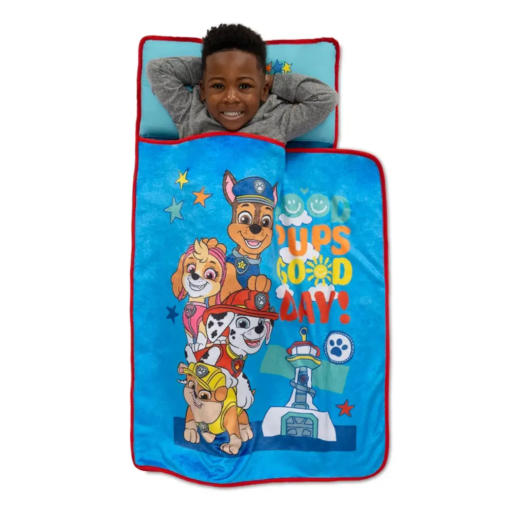 Delight your little one with fun adventures of Chase, Rubble, Marshall, and Skye from the popular Nick Jr series Paw Patrol with the Good Pups, Good Day Toddler Nap Mat. Your child can bring the comfort of home on-the-go, wherever they go with this convenient travel toddler nap mat. Perfect for daycare, sleepovers, travel, or naptime. Ultra-soft and cozy with a built-in quilted mat, with attached pillow and blanket. Featured in bright primary colors. This nap mat includes a velcro closer and convent easy carry handle, just roll-up and go!, take to the next adventure!