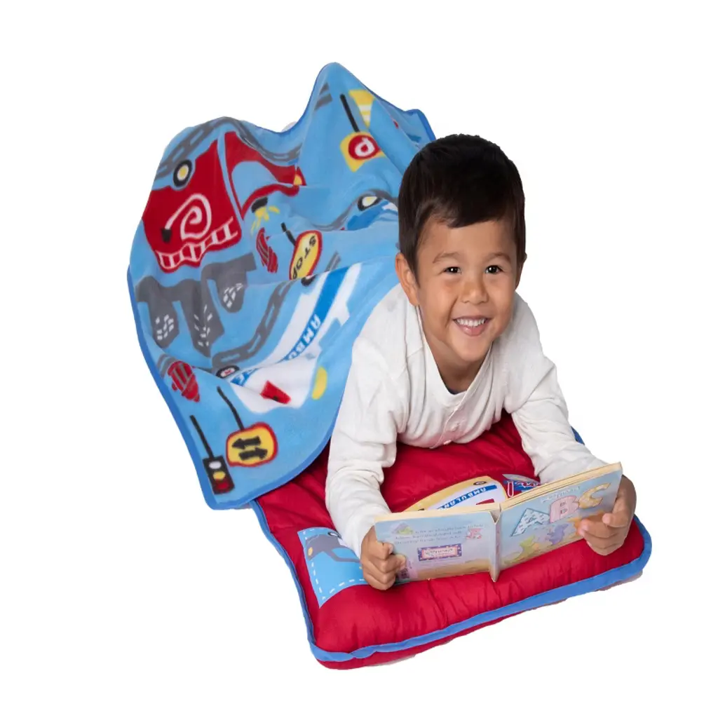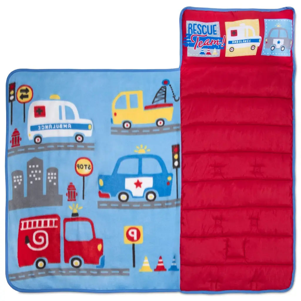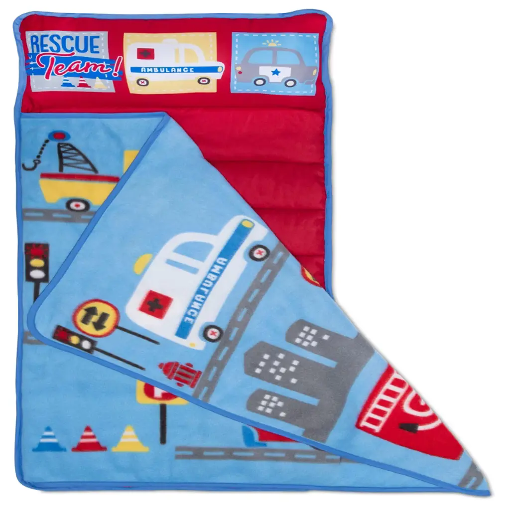 NoJo Rescue Team First Responders Toddler Nap Mat - Delight your little one with dreams of Mighty Rescue adventures with this “Rescue Team” Toddler Nap Mat, featuring bright and colorful Rescue Trucks. Your child can bring the comfort of Home on-the-go wherever they go with this convenient Travel Nap Mat. This Nap Mat is perfect for sleep overs, Nap time, overnight trips and of course daycare. Ultra-soft and Cozy with a built-in quilted Matt, Plush Blanket and Pillow, your Toddler is sure to drift off into a deep sleep with dreams of Rescue Team Adventures. This nap mat also includes Velcro closers as well as a convent carrying handle so it’s easy to roll up and take to the next adventure!