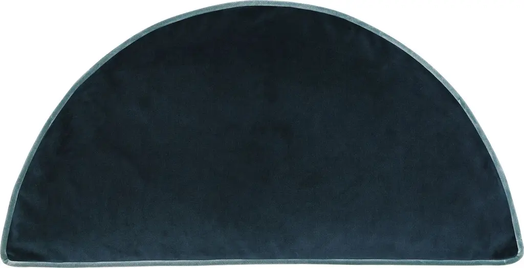 The half-moon shape makes this velvet throw pillow an unexpected addition to a sofa, bed, or chaise. The contrasting welt adds panache. Made in the USA, the pillow is generously filled with plume feathers for long-lasting loftiness. Hidden zipper closure.