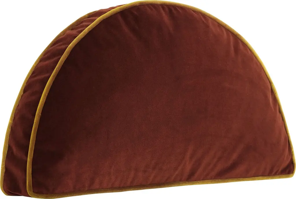 The half-moon shape makes this velvet throw pillow an unexpected addition to a sofa, bed, or chaise. The contrasting welt adds panache. Made in the USA, the pillow is generously filled with plume feathers for long-lasting loftiness. Hidden zipper closure.