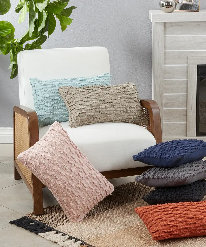 Transform your living room decor with this lush soft Nubby Throw Pillow with down filling. Featuring subdued hues and subtle pattern, this delicate throw pillow will work with any sofa or armchair. You'll enjoy a lovely decor and great comfort.