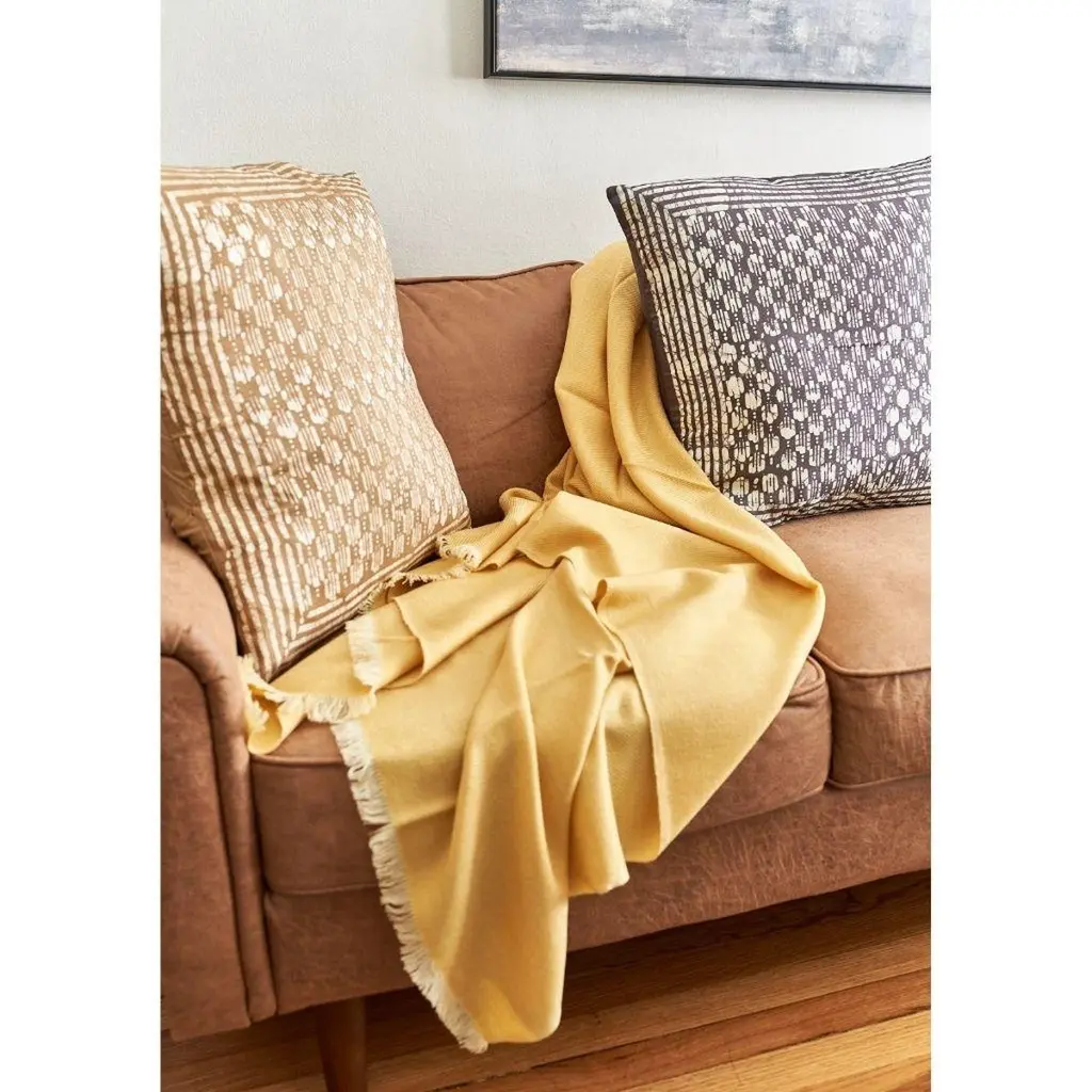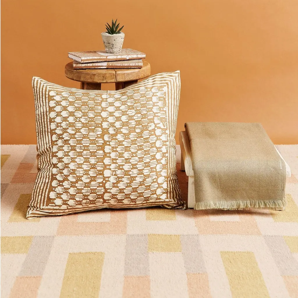 Oasis Gold Wax Block Print Modern Artisanal Mulberry Silk Pillow