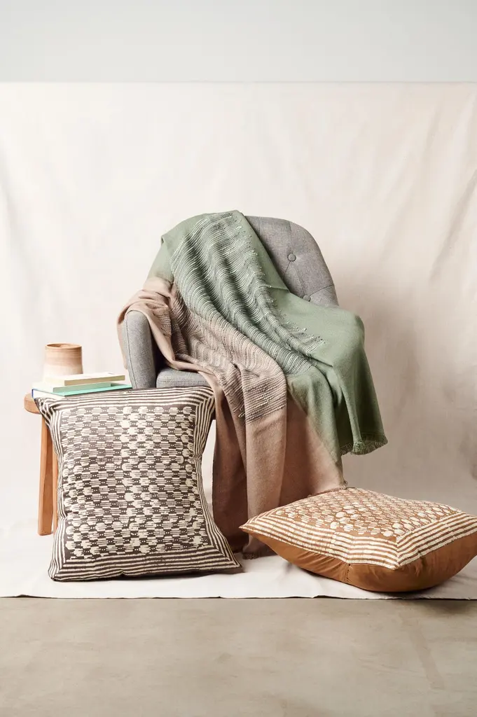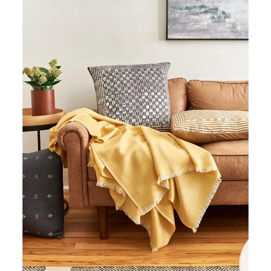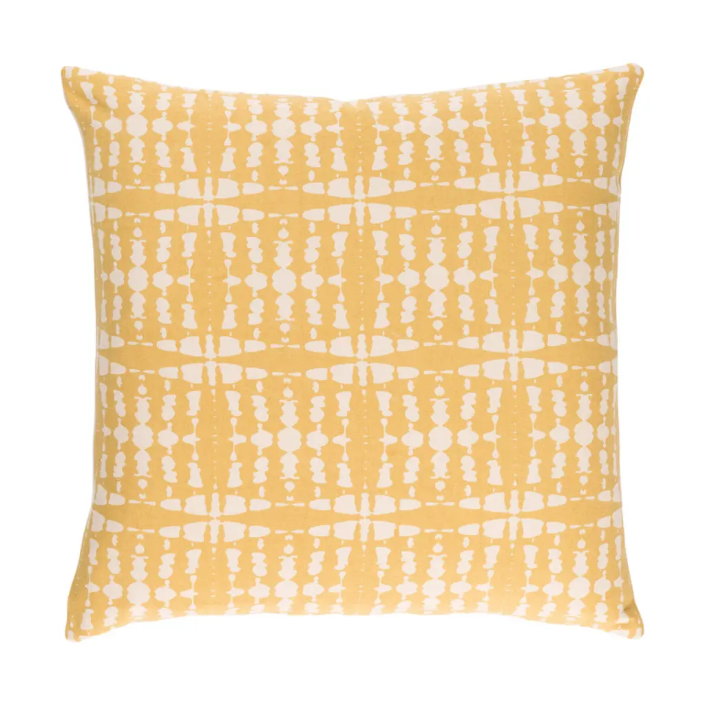 Custom design by Studio Variously, Shunya Gold pillow is handmade by master artisans in India. A sustainable design brand based out of Michigan, Studio Variously exclusively collaborates with artisan communities to restore and revive ancient techniques by exploring custom modern designs in textile based products.Shunya Gold pillow is luxurious and exquisite with its unique shibori print, which is handcrafted carefully to form symmetrical intricate pattern that blends in to form a Classic geometric design. As this pillow is 100% handmade from start to finish, each piece is unique.In this pillow we have used high quality 60 gms silk that is beautifully enhancing this unique shibori pattern. Premium quality of organic dye is used by master shibori artisans in India. The same natural dye is sourced from farms local to the artisan community. This silk is first carefully hand dyed using organic dyes that are free of toxic chemicals. This also ensures longevity and makes our pillows sustainable and timeless for luxurious interior spaces. Requiring attention to detail and finishing, Shunya Gold pillow beautifully combines heritage value and high quality craftsmanship supporting artisanal clusters ethically. Size: 20 inches x 20 inches square pillow (Down filler included in the price)Material: 100% 60 gms silk.Color: Front is gold and white. Back of pillow is dyed solid gold.Origin: Ethically crafted by master artisans in IndiaWash care: Hand wash with mild detergent and cold water only, hang dry, avoid direct sunlight.Packaging: Each cushion comes in a square cotton canvas pouch, which allows the textile to breath, and this can be re-used for storage.