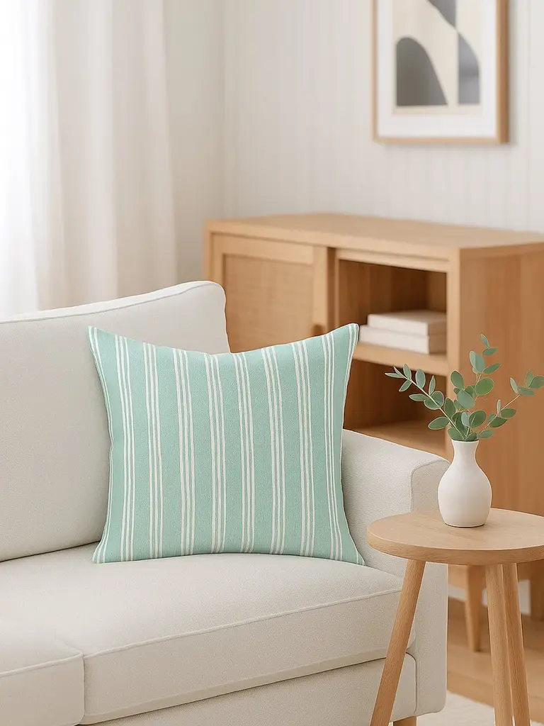 Ocean Drift Aqua Stripe Linen Pillow 20x20