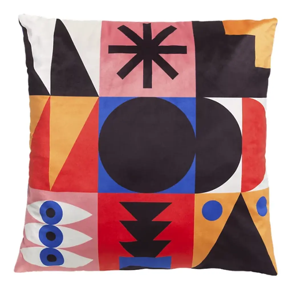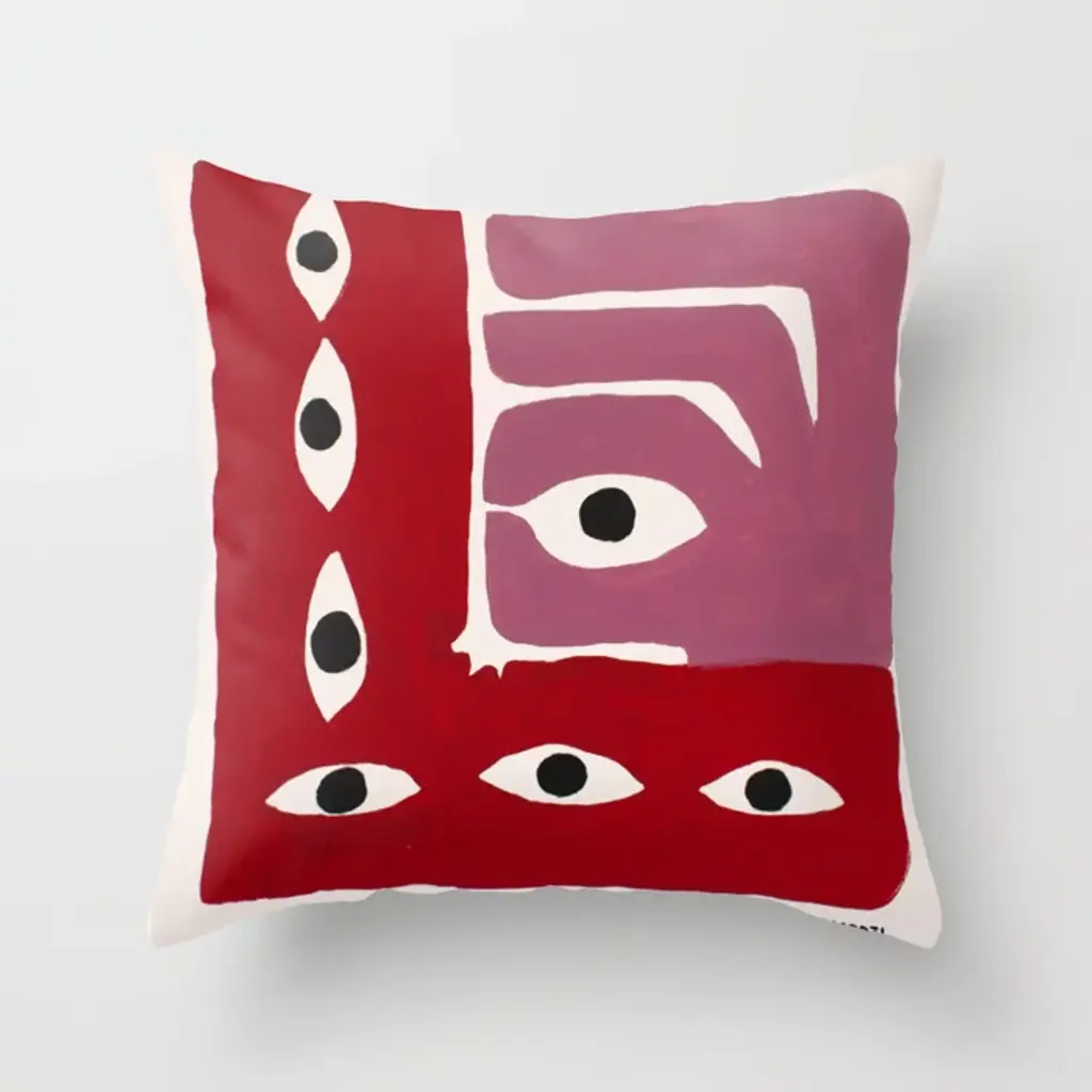 The Oggian Red Palm Throw Pillow from Qeeboo effortlessly blends modern aesthetics with a playful twist. Imagined by Italian designer Marco Oggian, this vibrant pillow features a unique design: one side showcases Oggian's signature natural motif, in this case, a red palm tree silhouette with a central eye. In contrast, the other side displays an abstract artwork. Constructed from durable acrylic and polyester materials and filled with soft polyfill, this pillow combines comfort and durability, making it a striking addition to any space.