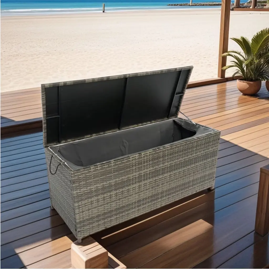 This deck box offers ample storage capacity, helping you create a tidy outdoor environment. It effectively integrates multiple functions into one. Ideal for those who appreciate modern elegance, this piece combines quiet style with everyday function. Invest in lasting resilience—this deck box reliably safeguards your outdoor essentials, season after season. The simple assembly method allows for effortless assembly.